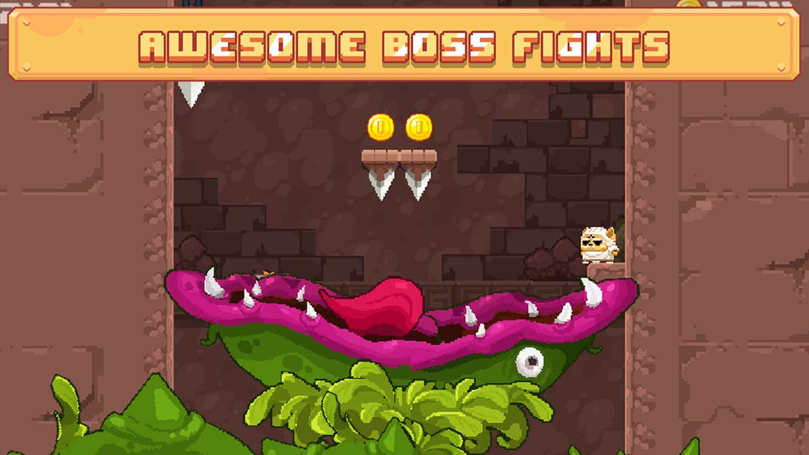 Cat Knight Story - un clásico, literalmente en todos los sentidos, plataforma de aventura, cuyo protagonista es un gato divertido, pero extremadamente valiente. La historia como todos están familiarizados, en el Reino de los gatos un villano astuto ha secuestrado a la Princesa y muchos caballeros han intentado liberarla, pero no muchos regresaron de un viaje, y aquellos que regresaron lo hicieron con las manos vacías. Y así se decidió llevar al caballero más valiente y hábil, así que tú. Prepárate adecuadamente para un viaje peligroso, nuestro héroe se fue a rescatar a su amada. Muchos niveles complejos, hechos en las mejores tradiciones del género, saltos vertiginosos, docenas de trampas, peleas contra jefes, bonitos gráficos de píxeles y personajes pueden conquistar a cualquiera, esta es la historia de Cat Knight.
