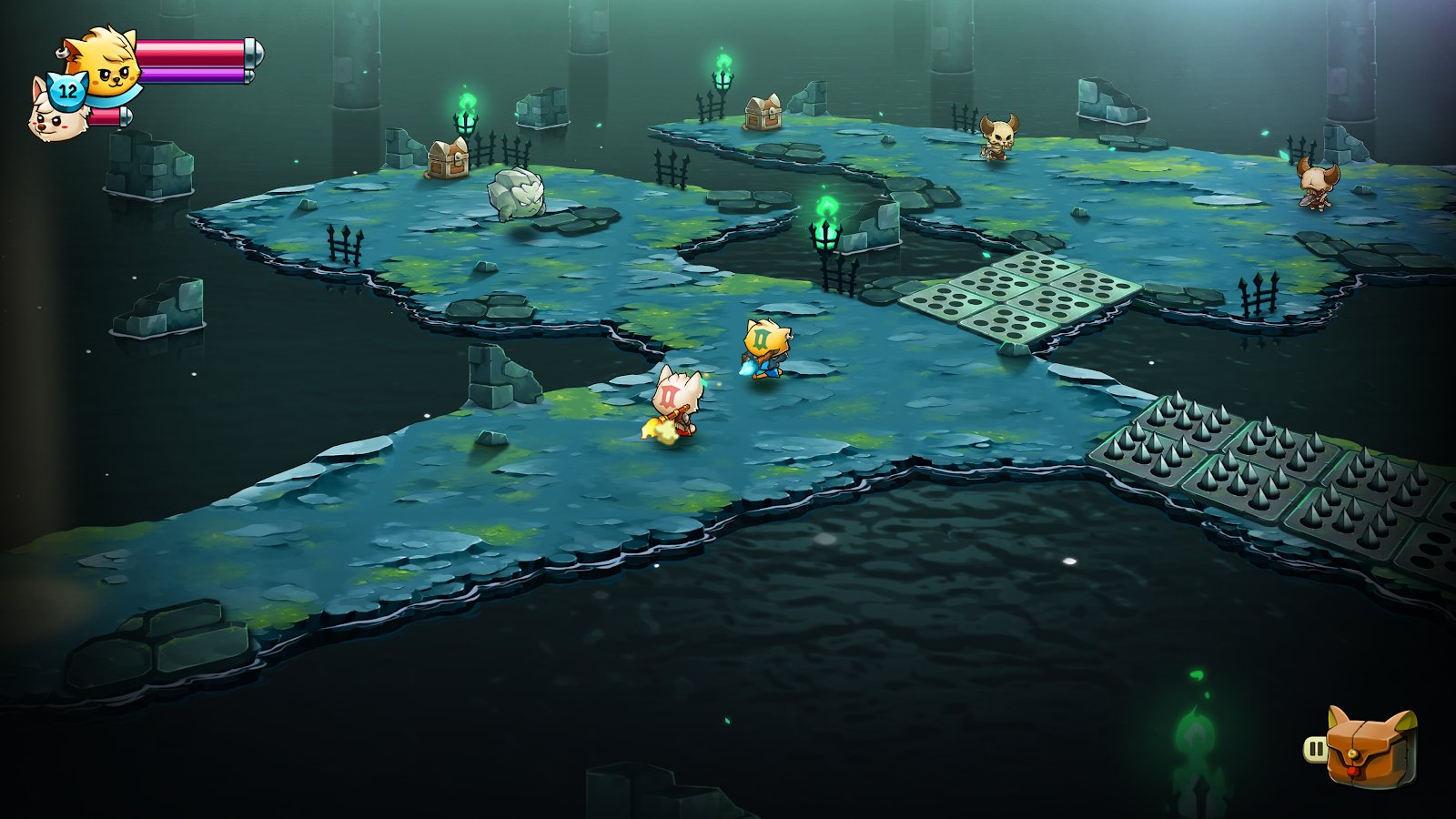 El reino de los gatos y el imperio de los perros están en una guerra interminable. Pero dos reyes, un gato y un perro, comparten un problema común. Sus tronos han sido arrebatados, y ahora deben unir fuerzas para recuperar lo que es suyo. Puedes jugar como cualquiera de los héroes y cambiar entre ellos en cualquier momento. Si un amigo está cerca, puedes invitarlo a unirse a la aventura juntos.