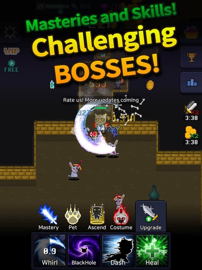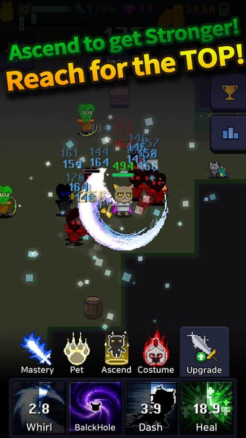Cat Tower - Idle RPG – juego de arcade para Android con elementos de RPG. En este juego, tu tarea será enviar a mi gato para que ataque a los enemigos y mejore sus habilidades. Actualiza y mejora constantemente a tu gato para prepararlo para una batalla a gran escala con poderosos jefes. Descubre las mazmorras infinitas con muchos enemigos y logra excelentes resultados en la batalla. Derrota a los enemigos y obtén bonificaciones adicionales. Viste a tu gato con varios trajes y consigue accesorios elegantes. Prepara a tu gato para la batalla decisiva y obtén la máxima puntuación.