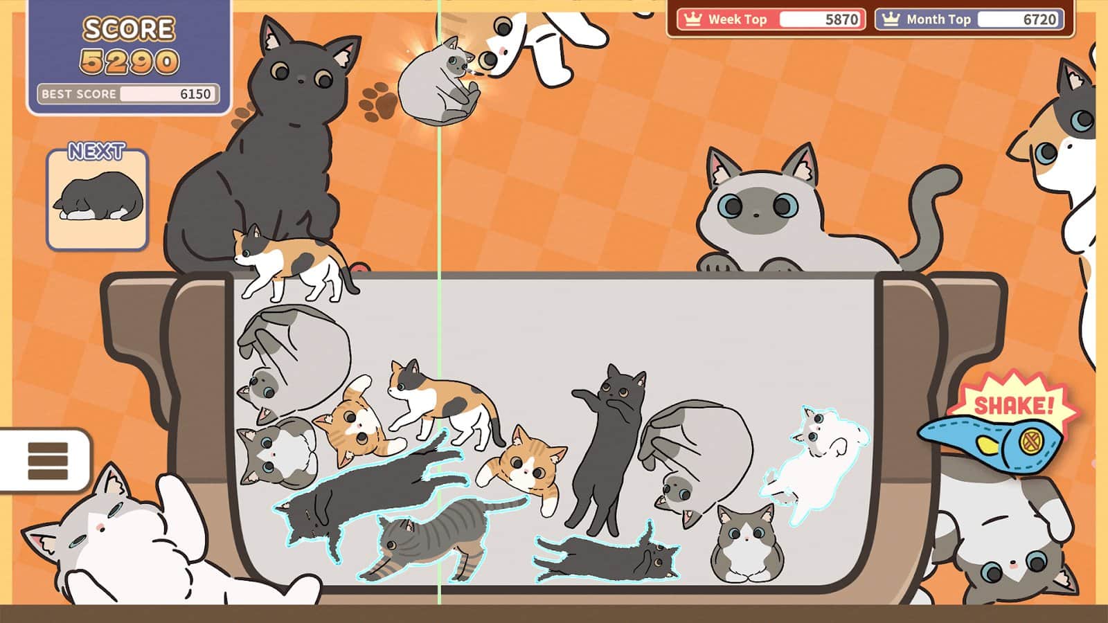 CatTrio - un juego de rompecabezas muy lindo y atractivo con elementos estratégicos. Cuando logras coleccionar tres gatos idénticos, salen de la olla y desaparecen, liberando espacio. ¡El objetivo es dejar salir tantos gatos como sea posible de la olla para ganar la máxima cantidad de puntos! El encantador diseño de los gatos y la simplicidad del juego atraerán tanto a niños como a adultos. El juego recuerda a los populares rompecabezas de combinar 3, pero con un tema de gatos adorables, lo que lo hace único y relajante. Puedes usar el botón "Agitar" para agitar la olla, mezclando los gatos para ayudar a crear las combinaciones deseadas.