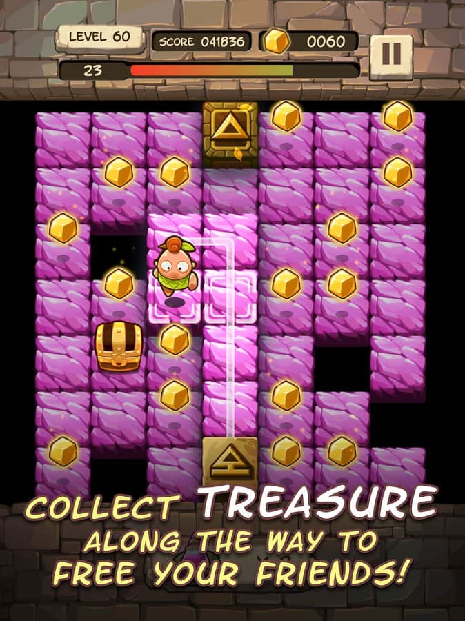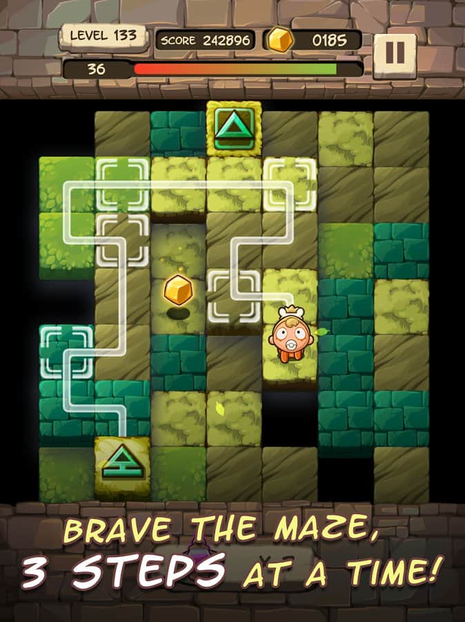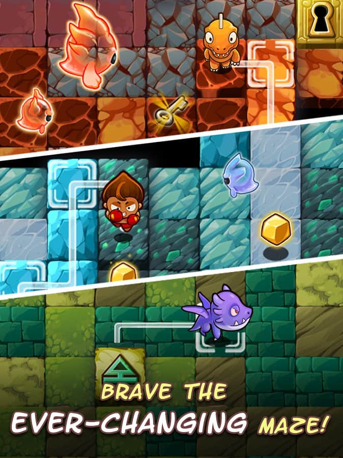 Caveboy GO (No lanzado) – un juego de lógica para Android donde ayudarás al héroe a través de laberintos peligrosos. Tu héroe bajó a la oscura mazmora para ayudar a sus amigos a escapar de la cautividad. Cada mazmora en este juego consiste en losetas, combina tres losetas idénticas en una fila y promuévelas en tu personaje. Delante de tu héroe hay muchas trampas y obstáculos peligrosos, y un encuentro con horribles monstruos. El laberinto está compuesto por diferentes losetas, así que ten cuidado al llevar a tu héroe a la salida con menos movimientos. Levanta la maldición del laberinto con todos tus amigos y descubre nuevos héroes.