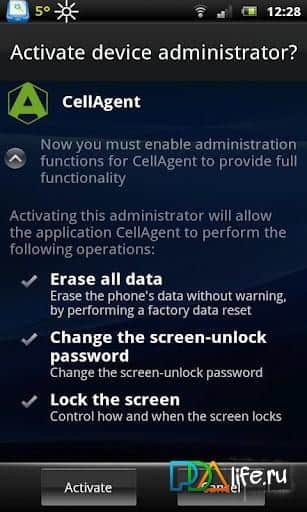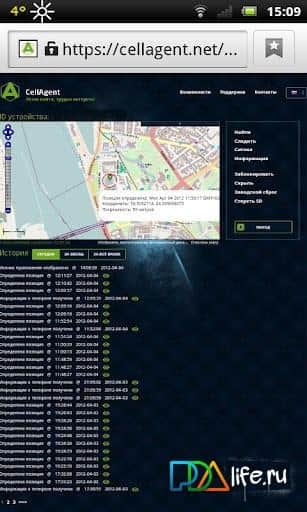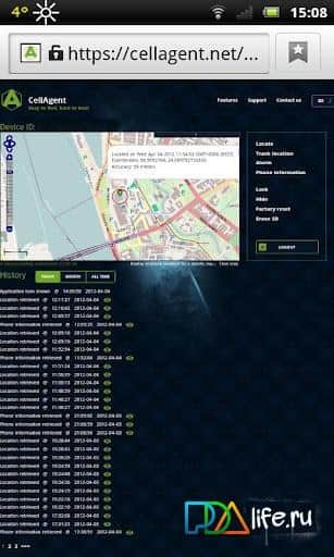 Monitoreo de cualquier dispositivo que funcione con el sistema operativo Android 2.2 y superior y que tenga acceso a Internet utilizando GPRS/3G/UMTS/Wi-Fi. Se utiliza en conjunto con el servicio cellagent.net. Para buscar un teléfono sin Internet (desactivar wifi/3G/GPRS) se utiliza un canal adicional de solicitud/respuesta a través de SMS.