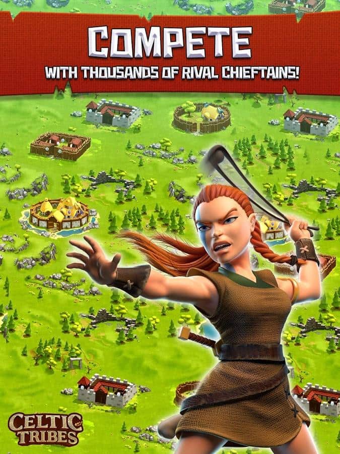 Celtas Tribales - Construcción MMOG – estrategia en Android donde tomas el control de tu tribu celta. Tu tarea en este juego es desarrollar tus propias tácticas del juego y construir una pequeña aldea, que en el futuro se convertirá en un enorme imperio. Produce recursos útiles, construye muros y refugios, y también participa en el comercio con otras aldeas. Reúne tu ejército invencible y emprende emocionantes viajes para explorar nuevas tierras y conquistarlas. Descubre el enorme mundo de este juego y desarrolla tu aldea. Usa magia para luchar contra los enemigos.