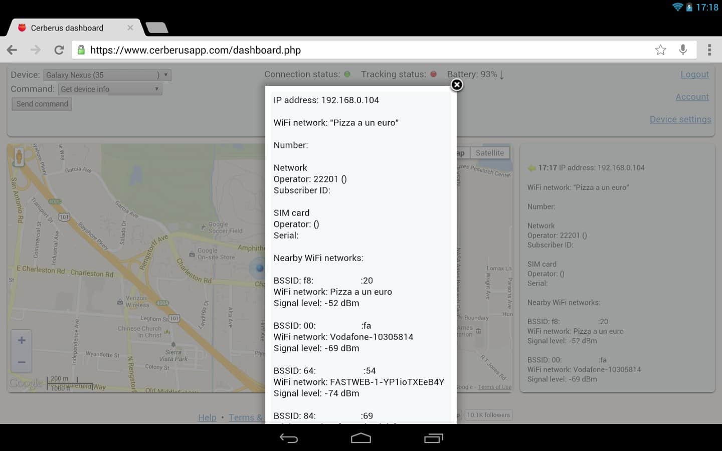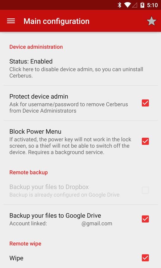Cerberus – programa de pegado para encontrar teléfonos inteligentes Android perdidos o robados. Diga NO a los ladrones y accidentes. El programa solo funciona si tiene control remoto y se detiene después de ejecutar consultas remotas, para que la batería de su teléfono no se vea afectada. Configure en los ajustes la protección Cerberus contra eliminación no autorizada y el ladrón solo podrá deshacerse de ella realizando un formateo completo del teléfono. El programa activa automáticamente el GPS si está apagado, si se intenta rastrear un teléfono inteligente. Además, la función de Verificador de SIM le permite conocer un nuevo número de teléfono si la tarjeta SIM cambia. Y mucho más que puede encontrar en la sección de configuración.