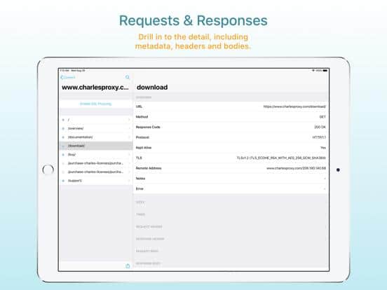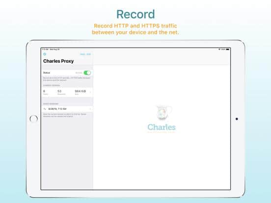 Charles crea un VPN local en tu dispositivo. Toda tu interacción de red pasa a través de Charles en el dispositivo y luego, como de costumbre, se envía a Internet a través de Wi-Fi o datos móviles. No se almacena información en ningún servidor remoto, y tus datos siempre permanecen confidenciales. Si también tienes Charles instalado en tu computadora de escritorio, puedes transferir sesiones grabadas a tu computadora para verlas en una pantalla grande.