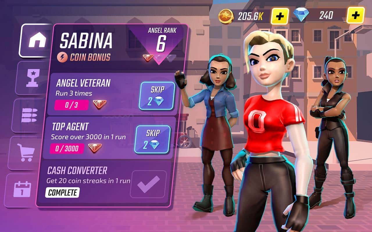 Los Ángeles de Charlie: El Juego – controla un equipo femenino de agentes espías y salva el mundo de amenazas inminentes. Elige un personaje entre las chicas preposicionales en el juego y viaja por la ciudad, llena de enemigos y villanos. Corre hacia adelante y supera muchos obstáculos en su camino, realizando acrobacias y esquivando balas. Por cierto, no olvides recoger monedas y destruir a los criminales para obtener bonificaciones. Gasta las monedas y gemas recolectadas para desbloquear habilidades especiales. Confía en la destreza de tus dedos, buena reacción e inteligencia.