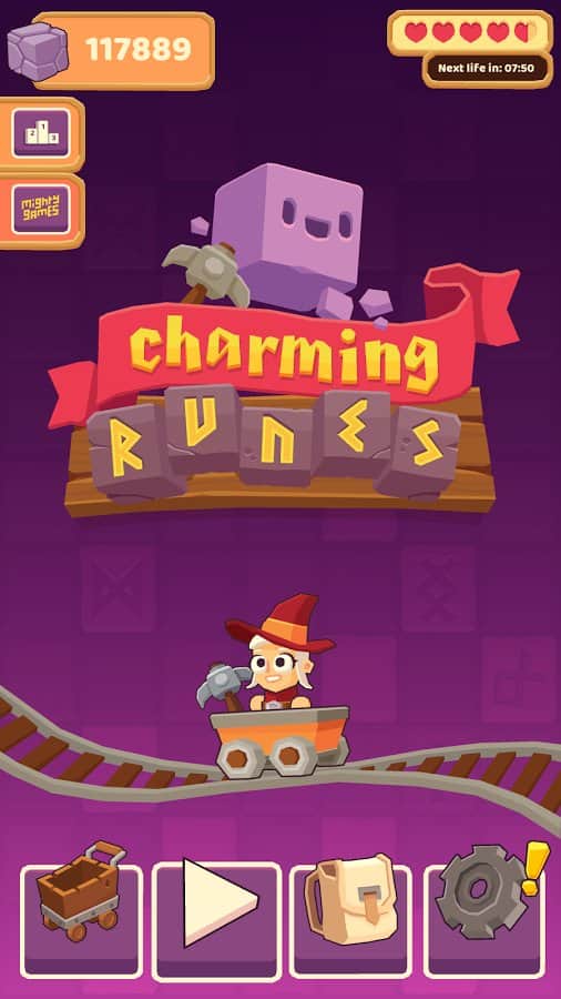 Runas Encantadoras – un juego en Android donde descenderás a la mina y producirás runas valiosas. En este juego controlarás al héroe, que viaja en el carro y lanza un pico, rompiendo piedras y extrayendo así runas útiles. Nuestro héroe se moverá lentamente por las vías y en ese momento necesitarás calcular con precisión la trayectoria de los picos, un golpe para obtener todos los bonificaciones. Ten en cuenta que el pico rebotará contra las paredes, piedras y otros objetos, y destruirá más enemigos. Completa tantos niveles en este juego y obtén grandes bonificaciones.