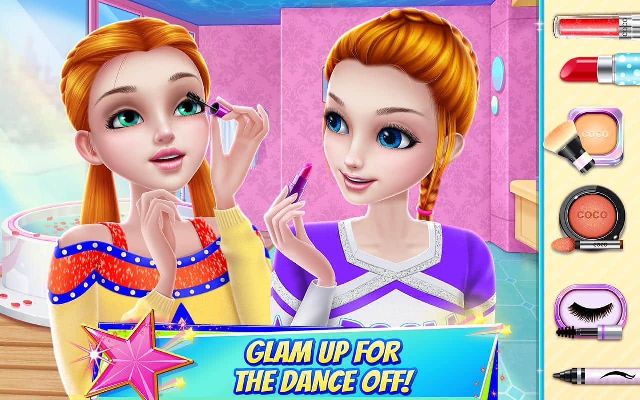 Competencia de Baile de Animadoras - Escuadrón de Campeones – un juego en Android donde jugarás el papel de capitán del equipo de animadoras. Llegaste a una nueva escuela y decidiste unirte al equipo de animadoras, porque bailas muy bien y te mueves. Ayuda a tu equipo a ganar el primer premio en la competencia anual y ofréceles un baile hermoso. Ve al gimnasio, aprende nuevos movimientos y muéstraselos a las otras chicas y coquetea con el capitán de los jugadores de baloncesto. Prepárate para la competencia y no olvides ir al gimnasio, pero si te lesionas un poco, ve inmediatamente al doctor. Gana a los jueces con tu baile y participa en mini-juegos.
