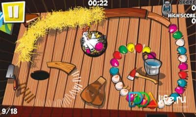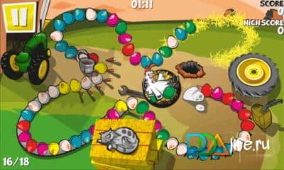 Chicken Zooma - juego loco tipo zuma en Windows Phone. Elige uno de 3 héroes y dispara para hacer rodar los huevos, ¡sus huevos! En el juego hay 18 niveles, durante los cuales no te aburrirás ni un minuto.