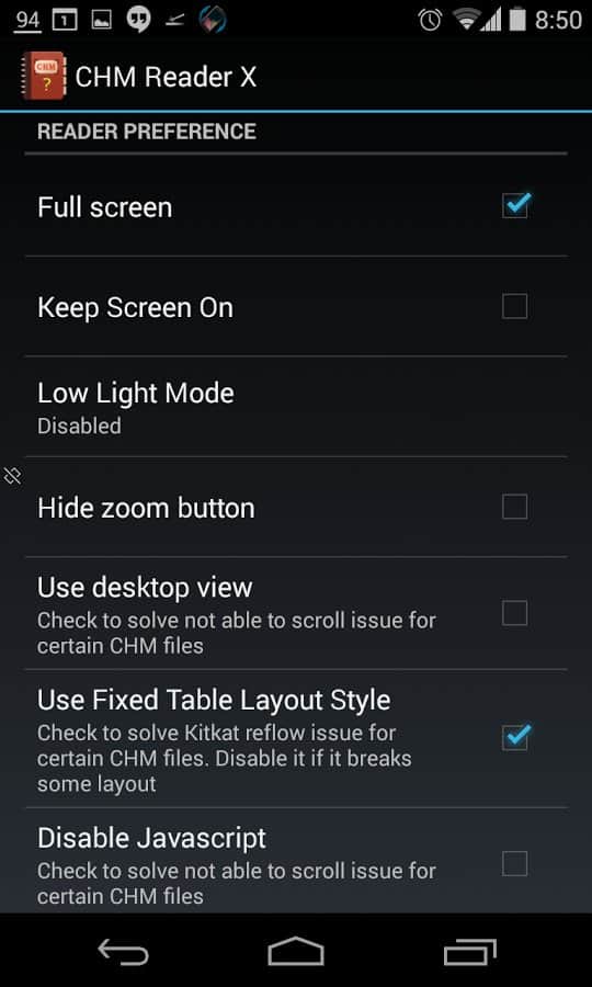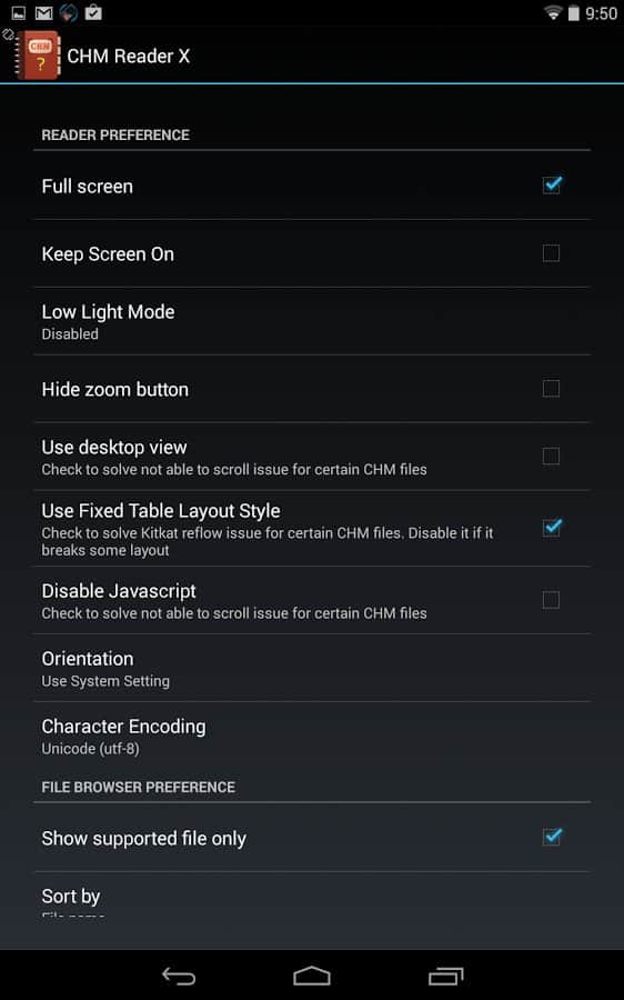 Soporte para usar los botones de volumen para navegar por las páginas. Asociación con archivos CHM/HTML en el Explorador. (Solo funciona con ciertos administradores de archivos, por ejemplo, OI File manager)