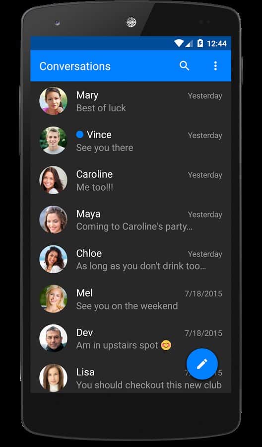 chomp SMS - Esta aplicación puede servir como un gran reemplazo para la interfaz estándar para enviar mensajes. Ya es reconocida por millones de usuarios, y cada día son más los que se suman. Su principal diferencia con la estándar es la interfaz; si la estándar cambia, es casi imposible, pero aquí podrás elegir un tema a tu gusto, esta es tu oportunidad. Como características más convenientes, te ayudará a gestionar el mensaje.