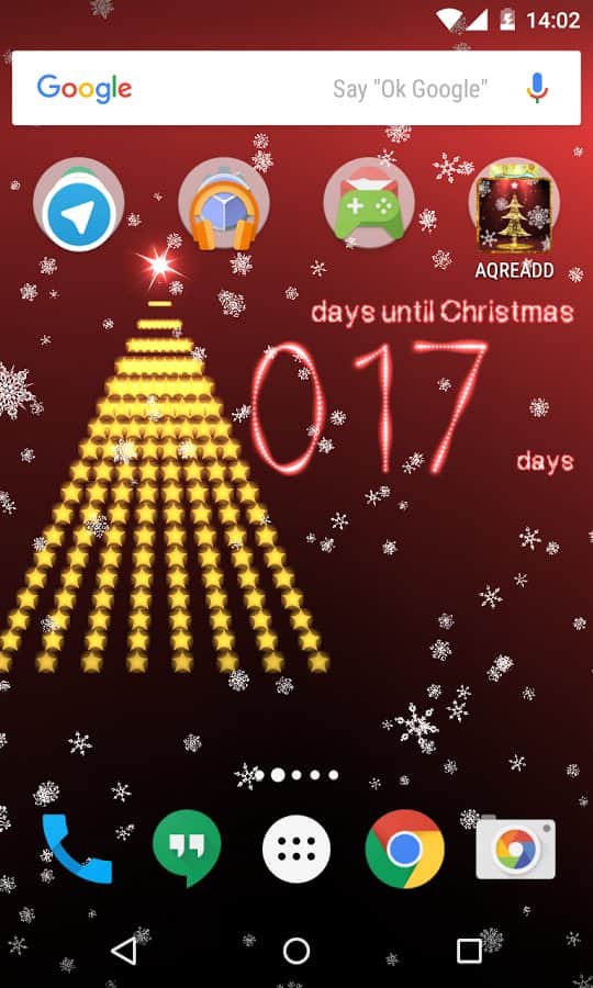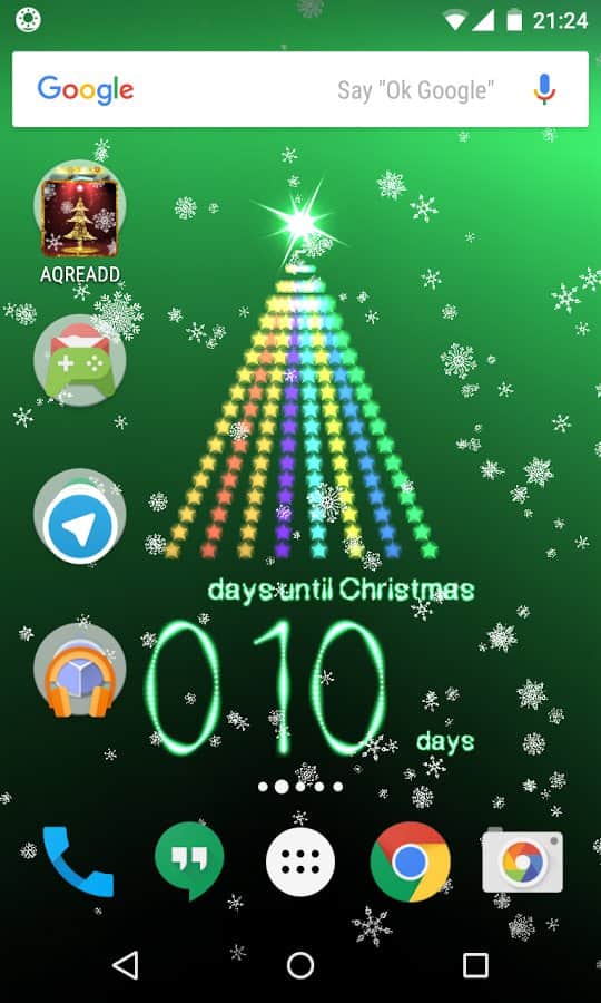 Christmas Countdown LW – fondos de pantalla en vivo 3D para desarrolladores de Android por aqreadd Studios. Genial árbol de Navidad 3D, luces festivas, y lo más importante – contando los días hasta el 25 de diciembre (Navidad católica) o cambiando la configuración de la cuenta regresiva que se llevará a cabo antes del 31 de diciembre. Un gran número de configuraciones y variedad de temas no te permitirá saltarte los preparativos para las vacaciones.