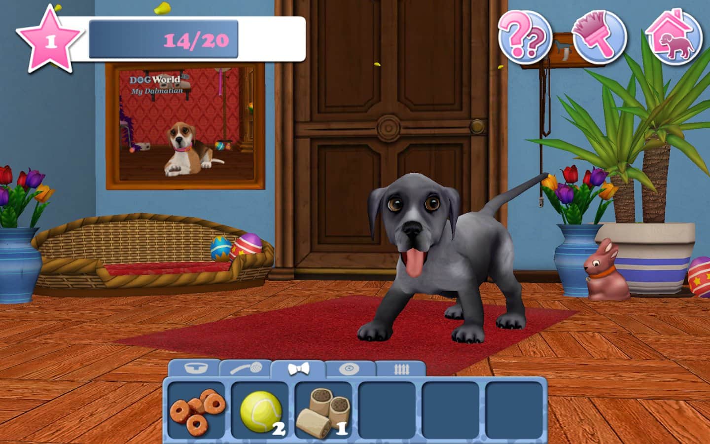 Navidad con el simulador DogWorld en Android donde conseguirás un gran amigo dálmata en tu teléfono. Juega con el divertido cachorro y explora las diversas habitaciones y el patio trasero de la casa. Disfruta con tu mascota tu tiempo libre y juega con él en varios juegos. Cuida de tu perro, aliméntalo, cepíllalo, báñalo y no olvides sacarlo a pasear. Guía a tu mascota a través de las diversas habitaciones de la casa que van desde la sala de estar y la cocina hasta los dormitorios y gimnasios. Consigue los tan esperados regalos para el nuevo año y viste a tu cachorro para las fiestas.
