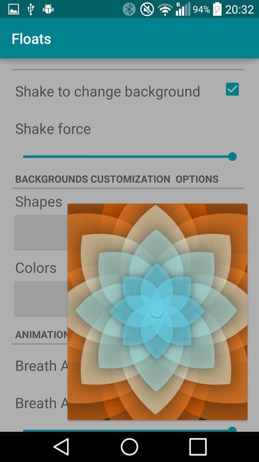 Chrooma Floats LWP es un hermoso y fascinante fondo de pantalla en vivo para tus teléfonos y tabletas Android. Al establecer fondos de pantalla en tu teléfono, obtendrás una imagen abstracta que está constantemente cambiando y transicionando de una forma a otra. Un fondo de pantalla animado que combina una enorme paleta de colores que resuenan entre sí y crean un efecto fascinante. Los fondos de pantalla tienen efectos de paralaje y consumirán un pequeño porcentaje de tu batería. Observa más de 20 formas diferentes en tu pantalla y disfruta del hermoso efecto relajante.