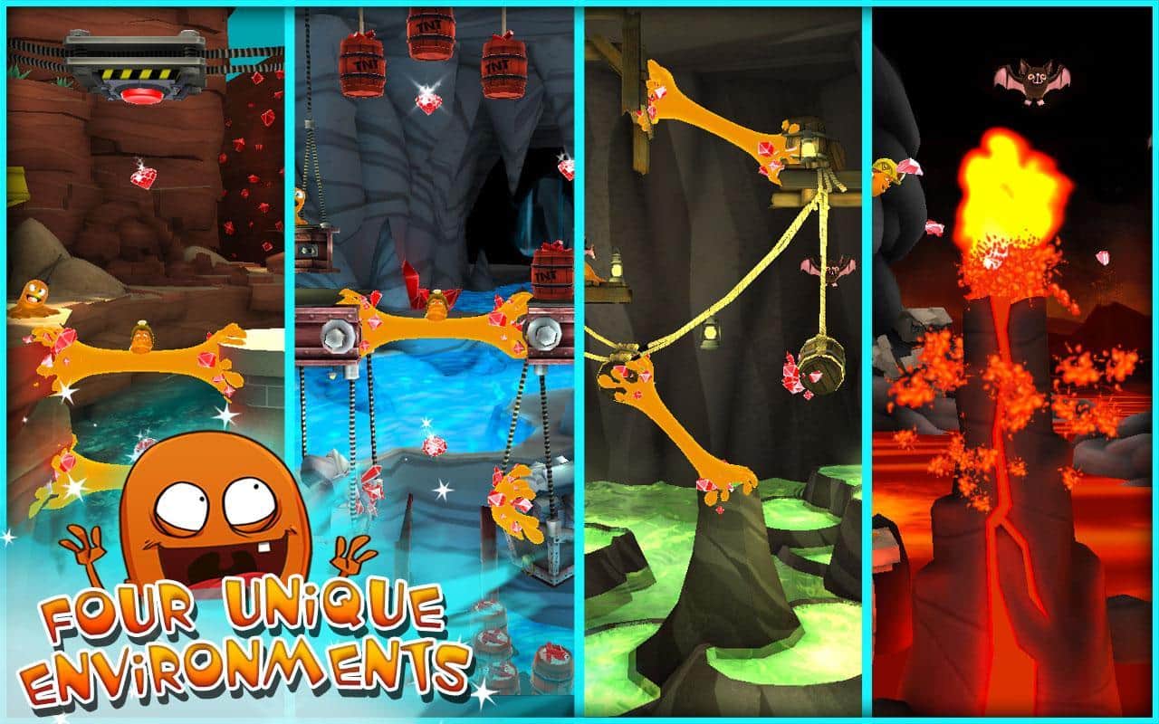 Chuck the Muck - este juego de rompecabezas para Android es básicamente una física de una naturaleza diferente. Así que, el personaje principal, una gota llamada CHUCK, intenta recoger cristales de diferentes maneras. Para ayudarlo, tendrás que estirar para construir, incluso disparar con una pistola y tener miedo de murciélagos, volcanes, guardias, etc. Completa 40 niveles en 4 ubicaciones únicas, tendrás que resolver una variedad de rompecabezas y acertijos para recoger cristales. ¡Recoge bonificaciones durante el juego y gana recompensas y logros!