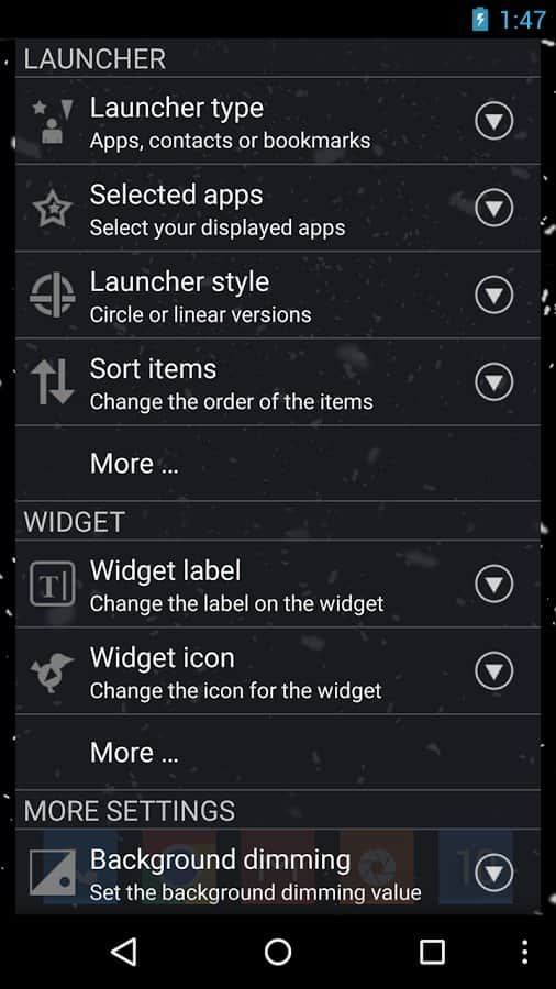 Widget CircleLauncher para Android con el que puedes agrupar tus aplicaciones o contactos favoritos en grupos para un uso rápido. También puedes cambiar el texto, los íconos, el color y el tamaño, y puedes elegir la forma en que se desplazan. Sin duda, este widget simplificará el manejo de tu teléfono.
