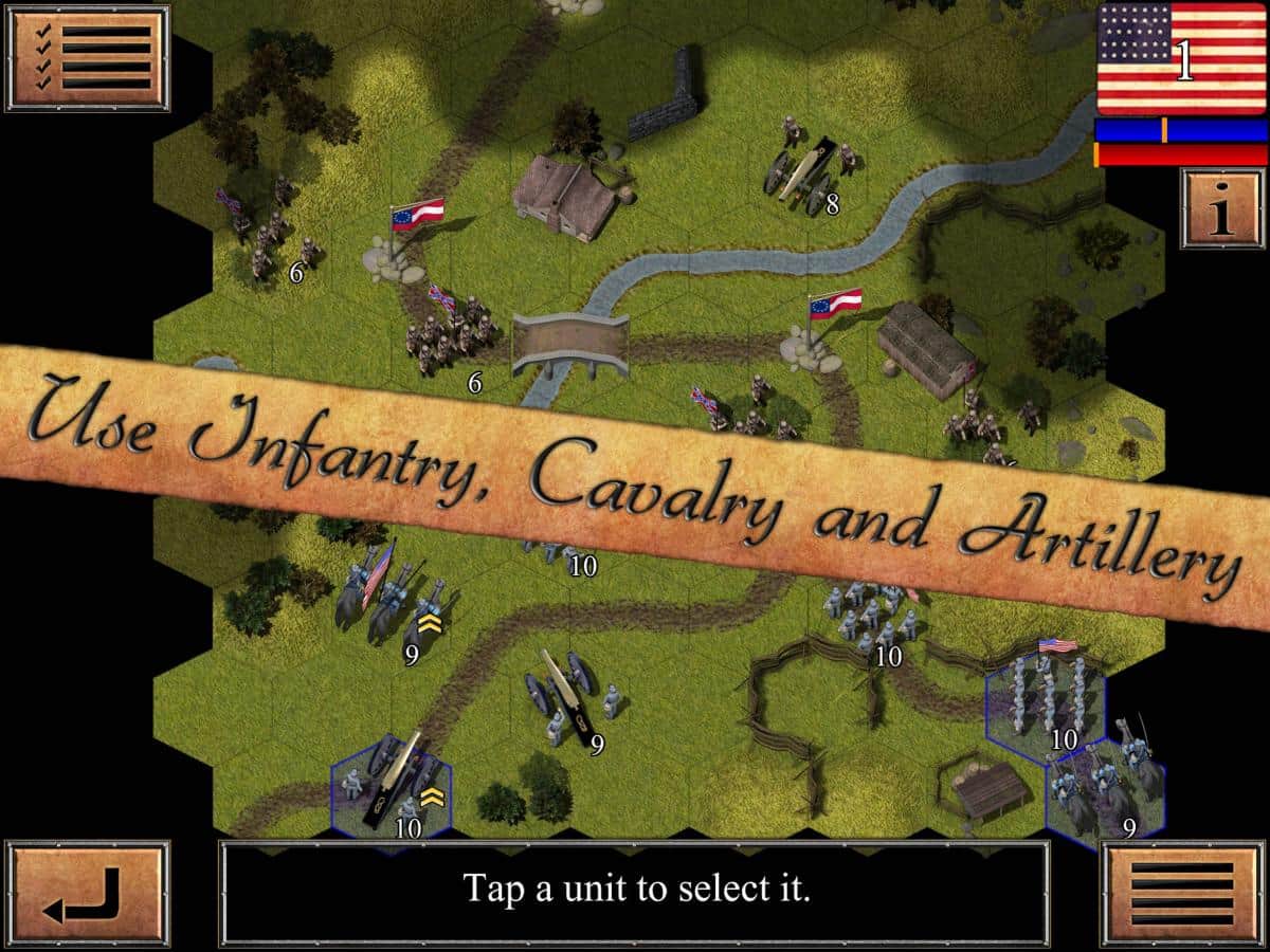 Guerra Civil: 1863 – juego de estrategia para IOS donde aceptas tu parte en la guerra civil, que tuvo lugar en los Estados Unidos en 1863. Elige uno de los bandos del conflicto y comienza a luchar. Comanda las tropas de la Unión o de la Confederación, y sigue con la misión. Este juego te deleitará con una gran cantidad de unidades, soldados y batallas épicas. Desarrolla una estrategia y tácticas de batalla imbatibles, y gana en esta guerra sedienta de sangre. En el juego también encontrarás varios niveles de dificultad, elige el que más te convenga y comienza a jugar. Coloca tus tropas en ubicaciones estratégicas y sorprende a las tropas de los oponentes.