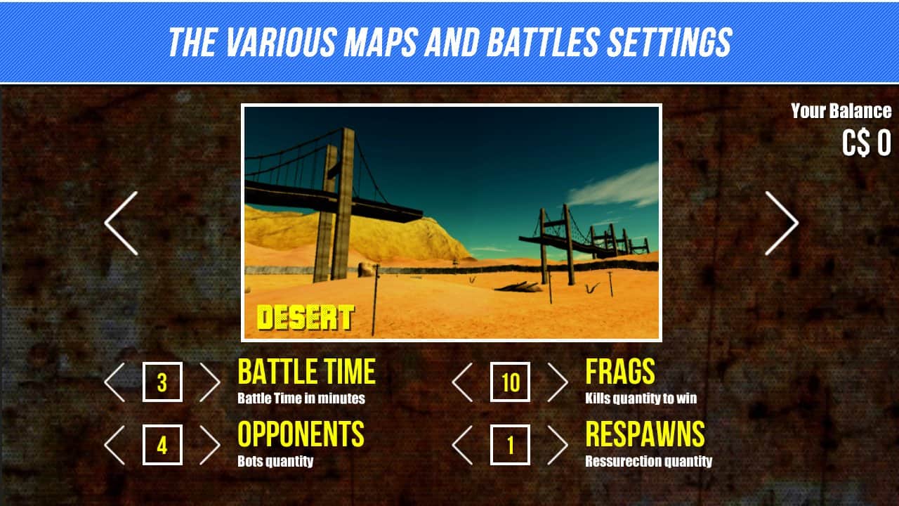Cinco tipos de mapas: desierto, arena, cantera, fábrica, portaaviones