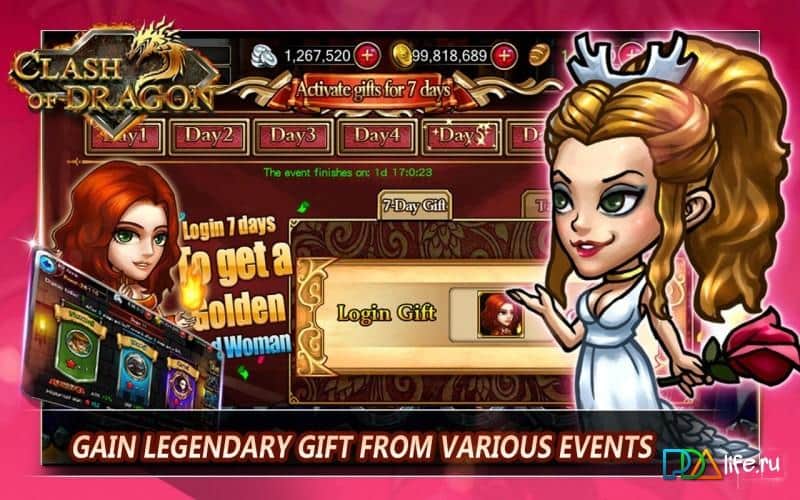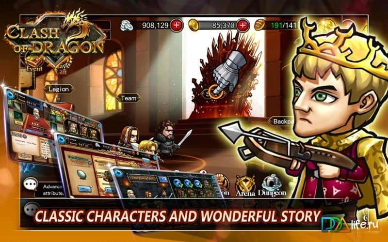 Clash of Dragon es un juego en el que debes defender tu Reino de las fuerzas invasoras del mal y la oscuridad. Reúne a tu equipo de valientes héroes y participa en épicas batallas con poderosos señores y enemigos por el poder en el Reino. Viaja por el mundo y descubre nuevos personajes con diversas habilidades. Completa varias tareas y misiones, lucha contra monstruos y poderosos jefes. Utiliza las habilidades de cada héroe en numerosas peleas y batallas y mejora a tus soldados, dándoles cualidades y habilidades adicionales.