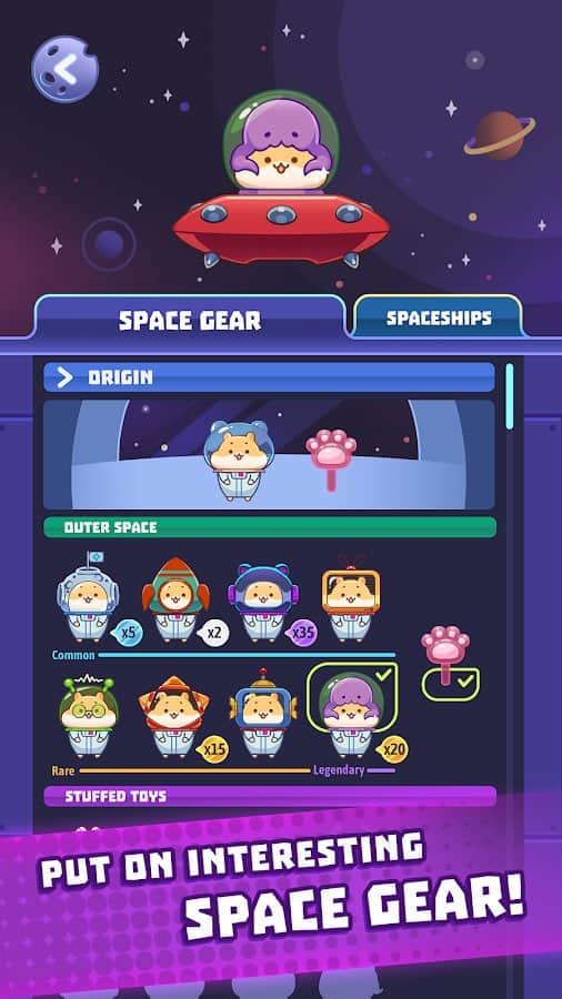 Te has adentrado en el mundo de los hámsters que están buscando otra civilización. Hace muchos años, enviaron una expedición al espacio que nunca regresó. Con el tiempo se han vuelto más sabios, ¡así que ayúdalos a encontrar y rescatar a los otros animales en el mundo de Claw Stars! Esta es una mini cámara donde necesitas tirar de la cápsula de garra y ver qué hay dentro (criaturas adorables o bonificaciones). Lucha con tus amigos, cambia la apariencia del traje y la nave espacial, colecciona cartas, visita los nuevos mundos del universo y da vida.