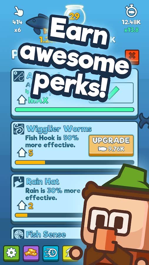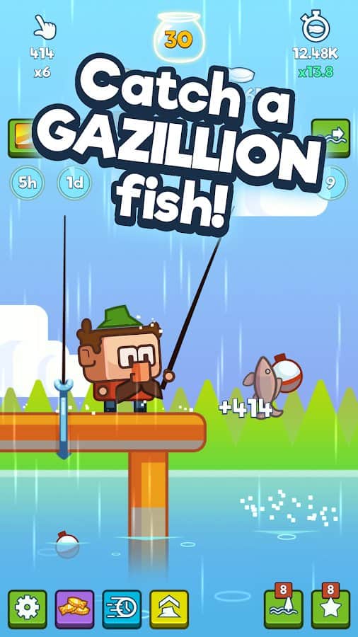 Clickbait: Toca para Pescar – un fascinante clic en Android, donde atraparás peces en diferentes aguas. Tu tarea principal en este juego es tocar tan a menudo como sea posible la pantalla de tu teléfono y divertirte durante tu tiempo libre. Atrapa tantos peces como sea posible y ten la oportunidad de mejorar tu equipo de pesca. Cuantos más peces atrapes, más oportunidades tendrás para automatizar el proceso. Resuelve diferentes acertijos lógicos y desbloquea el acceso a nuevos cuerpos de agua donde podrás atrapar más peces. Obtén bonificaciones y premios y disfruta de gráficos coloridos.