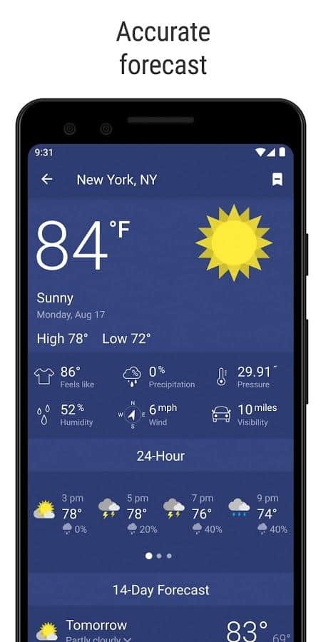 & lt;p & gt; Pronóstico del tiempo y radar en vivo-Clime-Instala esta práctica aplicación y olvídate para siempre de los pronósticos del tiempo inexactos, de la difícil búsqueda de información sobre este tema. Obtén cualquier información meteorológica en unos pocos clics, utilizando la funcionalidad avanzada y un pronóstico detallado para 1 o 7 días. Visualiza el pronóstico no solo en formato de texto, sino también en forma visual, gracias al mapa mundial. Resalta información importante en los informes, busca fácilmente la ubicación deseada, mantén un seguimiento de todas las unidades de medida, personaliza el widget para ti y disfruta observando los cambios.