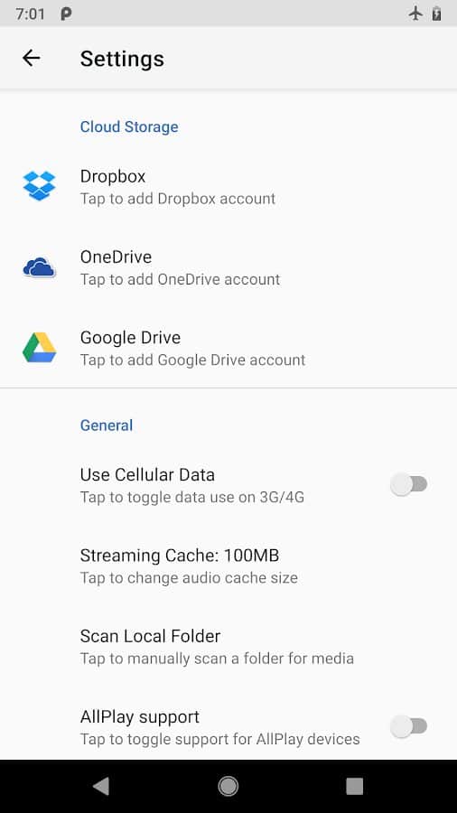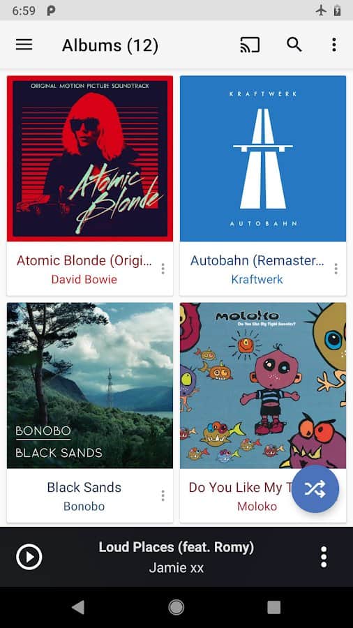 Toda tu biblioteca musical, ordenada en varios dispositivos, o almacenada en una o más ubicaciones de almacenamiento en la nube y la canción favorita que quieres escuchar ahora mismo cuando accedes a ella. ¿Una situación familiar? Sin duda. Un nuevo reproductor de los creadores de doubleTwist ayuda a combatirlo. La aplicación escanea las unidades en la nube conectadas (en este momento solo se admite Dropbox, OneDrive y Google Drive) para archivos de música y los reproduce. Lo más valioso que puedes guardar sin conexión. No hay restricciones en el número de pistas. El reproductor está decorado de acuerdo con el concepto de Material Design e incluye todas las funciones básicas del reproductor, incluyendo búsqueda de portadas, información sobre el artista, scrobbling en Last.FM, etc.