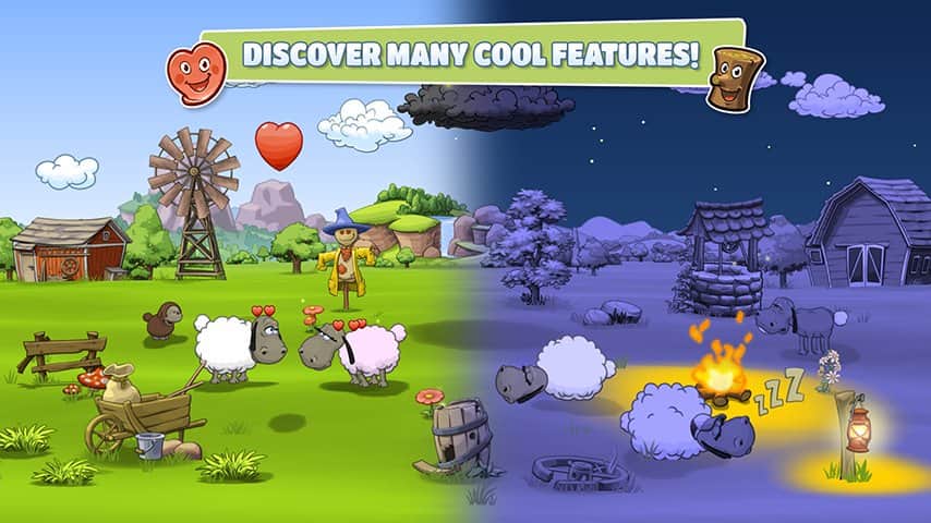 Clouds & Sheep 2 – la continuación de un emocionante juego para Android, donde tendrás que manejar todo un rebaño de ovejas y mejorar su vida. Tus responsabilidades en este juego incluirán asegurarte de que tus animales estén alimentados y felices, esquilar su lana, darles agua de lluvia y encender una fogata para calentarlos mientras duermen. Si cumples con todos estos requisitos, tus ovejas estarán felices y el rebaño se enriquecerá con nuevos corderitos. Juega con los pequeños corderitos y dales regalos. Obtén recursos valiosos en forma de lana, madera y flores y cámbialos por diversos accesorios y juguetes para tus mascotas. Comienza a jugar ahora mismo y haz que tus ovejas estén sanas y alegres.