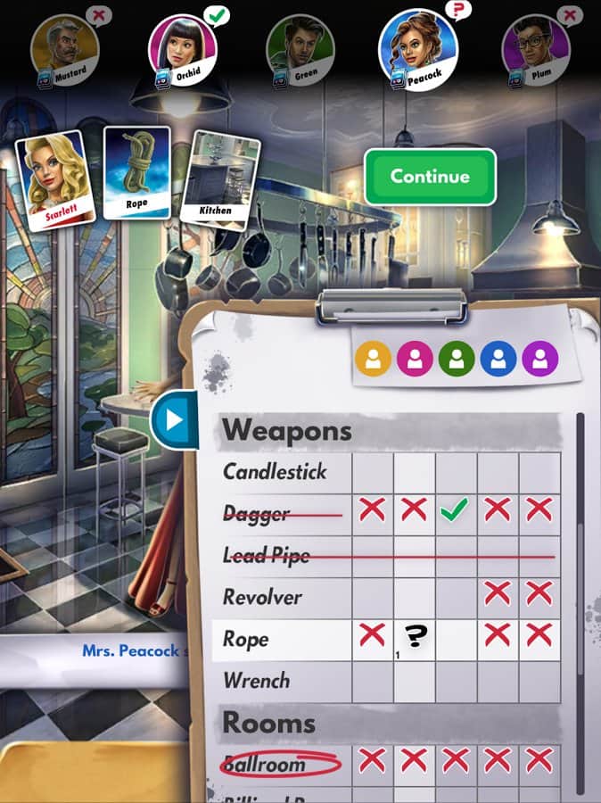 Cluedo - el juego se hizo originalmente en forma de juego de mesa y luego recibió un nacimiento digital. La versión de Android recibió una jugabilidad ligeramente modificada y comenzó a representar una cierta similitud con el juego de búsqueda con elementos de juegos de mesa, que se basa en una historia de crimen. La trama se desarrolla dentro de los límites de la antigua mansión a la que llegaron los invitados, y el propietario de la mansión es una víctima de homicidio, el Dr. Black. ¿Quién actuó como el asesino cuando ocurrió el crimen? ¿Qué arma se utilizó? Todo esto es lo que descubrirás a medida que avances en el juego. Como ya se mencionó, la mecánica del juego combina varias direcciones, y cada personaje requiere su propio enfoque, así que pensar no será suficiente.