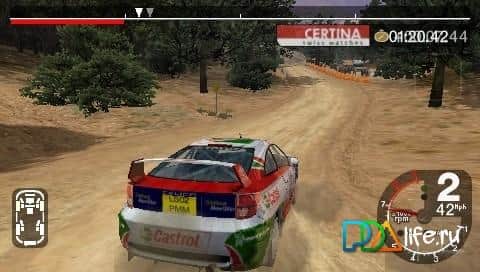 Simulador de carreras Colin McRae Rally para PSP, que te abrirá un gran campeonato y el campeonato mundial de rally. Todas las señales de un buen juego: gráficos de calidad, alto detalle, ejercicio, cambio de condiciones climáticas, día y noche, una amplia selección de coches y ajustes. Tiene un modo de pantalla ancha (configuración única y cada vez tengo que habilitarlo de nuevo). Comienza de manera sencilla y haz una carrera como piloto, ¡compite con estos campeones! El consejo es estudiar bien las características de cada coche y luego la victoria en cada temporada y cada carrera será tuya.