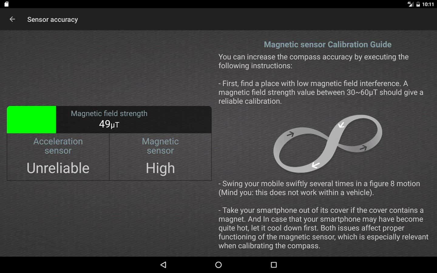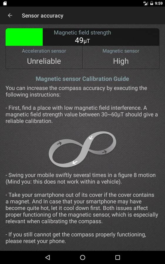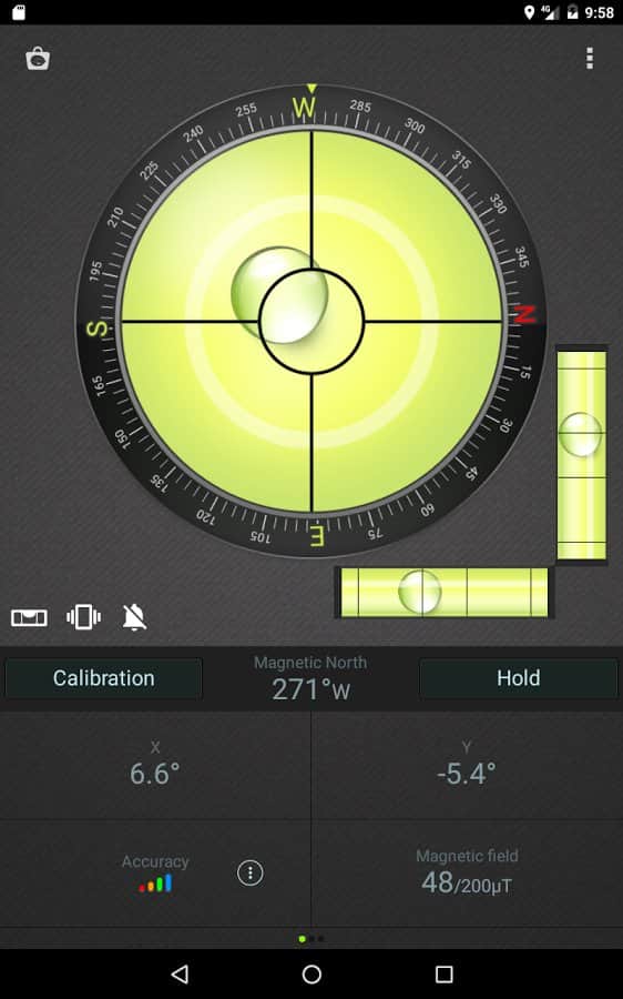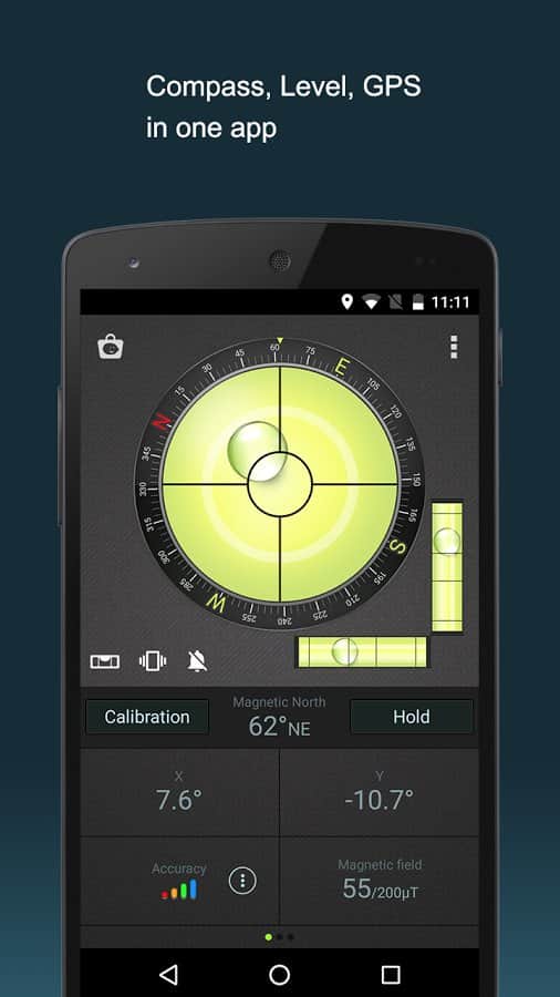 Compass Level - aplicación que combina una brújula precisa, nivel y coordinador GPS. Una excelente aplicación para aquellos que practican orientación deportiva. También es útil para turistas, cazadores y recolectores de setas. Para que la aplicación funcione a la perfección, es necesario calibrarla antes del primer uso y después de esto estará lista para trabajar. Es importante tener en cuenta que la precisión de los datos puede variar ligeramente dependiendo del modelo de su teléfono. También la precisión se ve afectada por la distancia del teléfono a varios dispositivos electrónicos y la distancia al campo magnético. Mantenga el teléfono alejado y siempre obtendrá datos precisos.