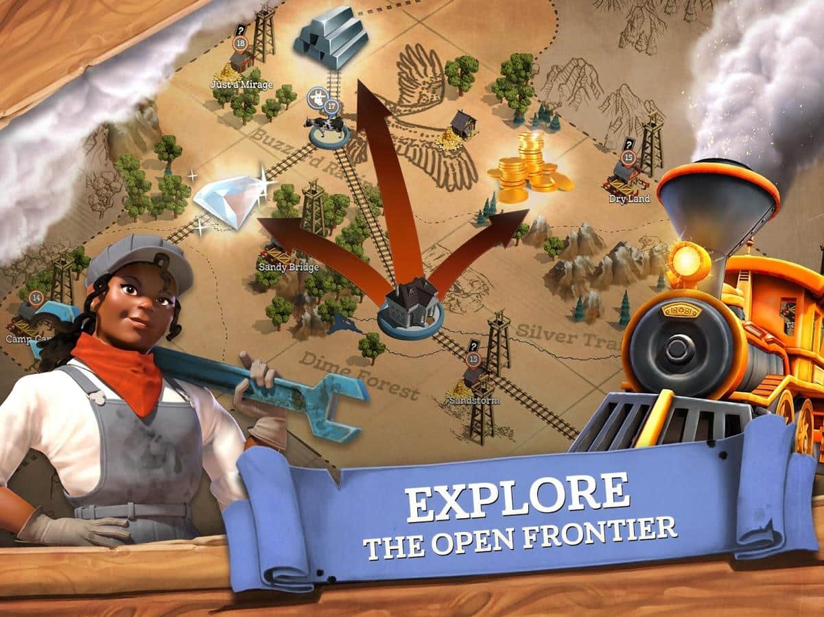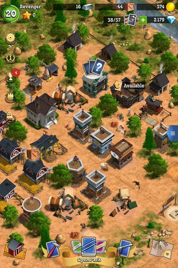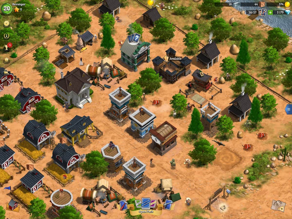 Para resumir todo lo que se puede decir sobre el juego Compass Point: West, se puede decir que esta es una acción ambientada en el Lejano Oeste. Sin embargo, si profundizamos en los detalles, no todo es tan simple. El desarrollador de este proyecto fue el estudio Next Games Oy, famoso por el juego de zombis The Walking Dead No Man's Land. En Compass Point: West, los chicos decidieron utilizar una variedad de soluciones creativas y movimientos. Y así, ante nosotros hay un terreno desolado donde tienes que construir una ciudad próspera, desarrollarla y protegerla. Así que enfrentamos una estrategia de desarrollo urbano. Sin embargo, para la defensa necesitas un escuadrón de valientes soldados, que puedes obtener de la colección de cartas. Entonces, ¿ante nosotros hay un juego de cartas coleccionables? Las batallas tendrán lugar en una calle de la ciudad, en vista isométrica, en un estilo decididamente arcade. Entonces, ¿sigue siendo un juego arcade de acción? Aparentemente, aún hay que decidir qué género se adapta al juego, cada jugador lo determinará por sí mismo.