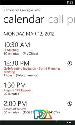 Conferencia Calleague - aplicación para Windows Phone, con la que podrás crear una conferencia telefónica, recordatorio, escanear el calendario para programar la próxima conferencia telefónica. Gran programa para personas de negocios y no solo.
