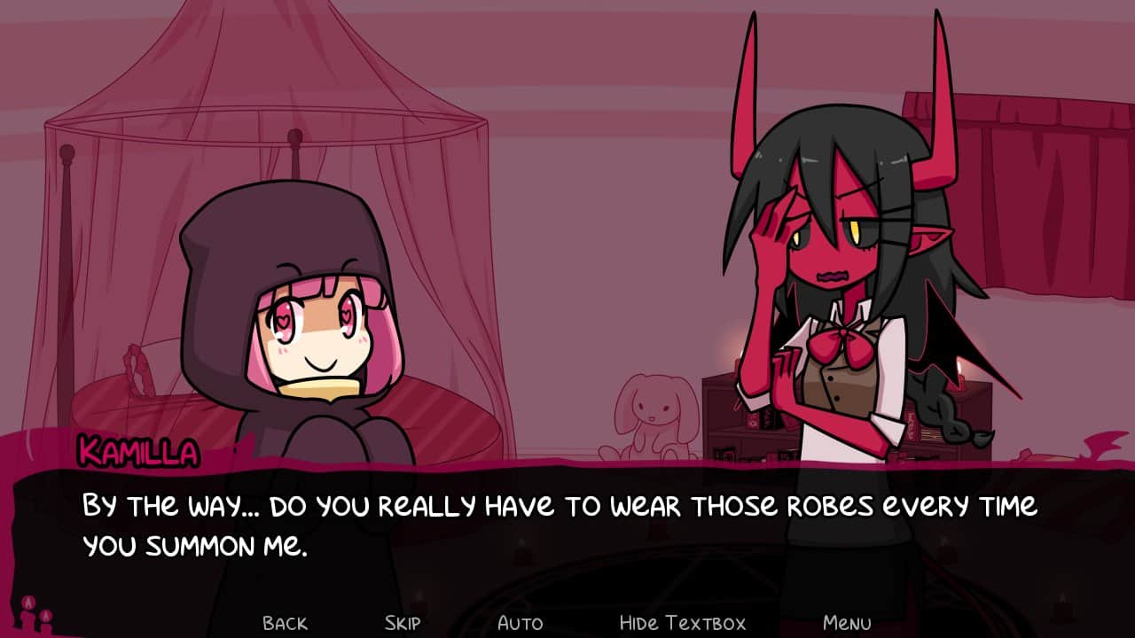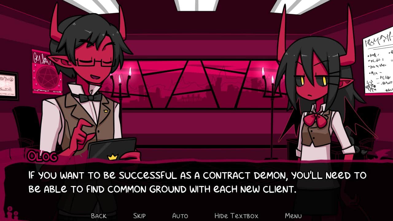 Contractar un demonio es una novela de anime con elementos de fantasía. Una historia muy emocionante, conmovedora e interesante que te contará sobre el amor de un ángel y un demonio. Los gráficos están trabajados con alta calidad, con un estilo brillante y fresco. Tendrás que leer los globos de diálogo y tomar decisiones. Te sumerges en la atmósfera encantadora del juego, con su humor inolvidable y música acompañante.