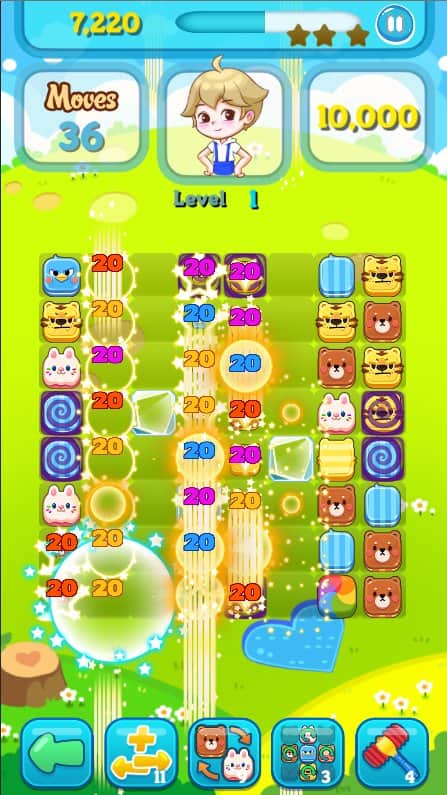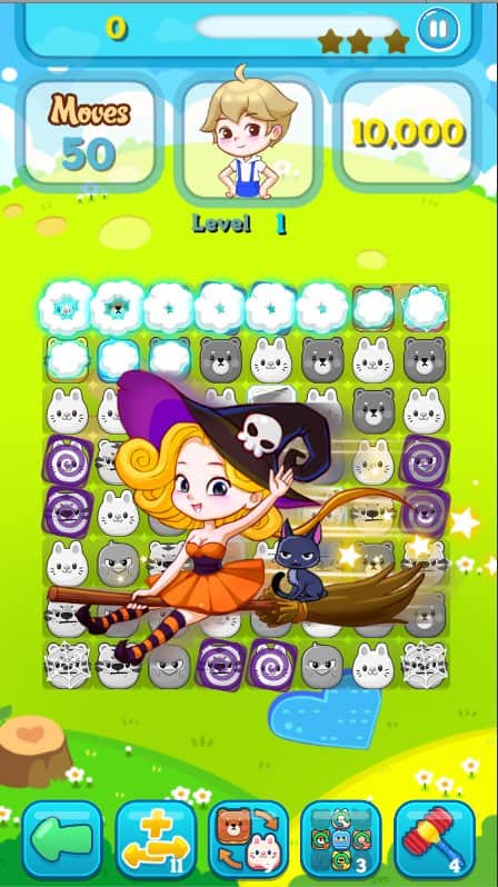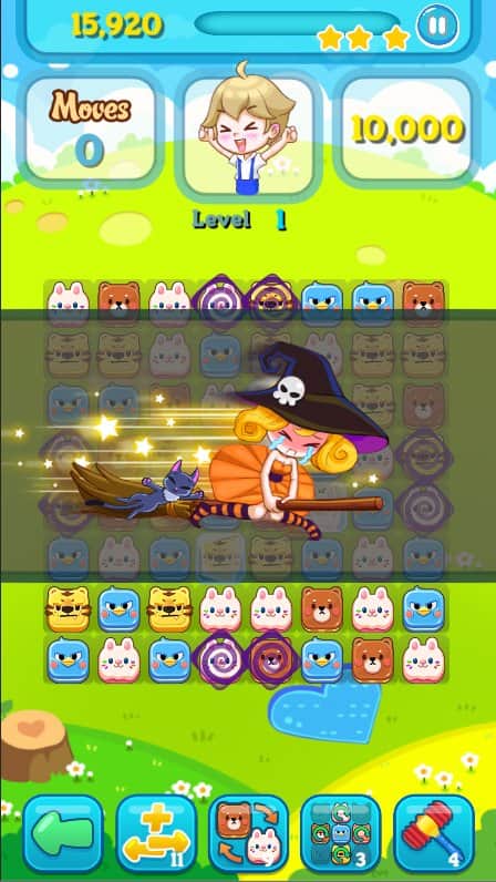 Cookie Animals VIP es un juego de rompecabezas adictivo del género "tres en raya" con una trama interesante. En un castillo lejano en la colina del bosque vivía una dulce bruja. La bruja tenía una pequeña peculiaridad: no soportaba el ruido. Como en el bosque viven muchos animales divertidos, siempre había mucho ruido. La bruja no pudo soportarlo más y maldijo a todos los animales, y de inmediato se quedaron dormidos. Tenemos que resolver más de 300 niveles de rompecabezas, recolectando combinaciones de 3 o más piezas idénticas. En cada nivel 50 hay una misión secreta y si la pasas con 3 estrellas, un animal especial será liberado de las cadenas del sueño. Ayuda a los pequeños animales a volver a la vida.