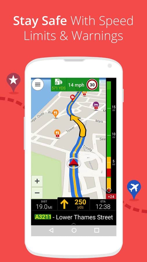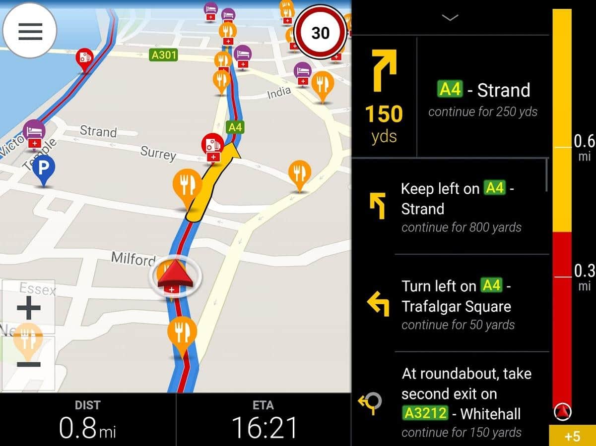 CoPilot – otro buen programa de navegación para Android del desarrollador ALK Technologies, con la capacidad de calcular la ruta más óptima, el modo de visualización 2D, 3D y "Conducción segura" instrucciones de voz (incluido en ruso), integración con el teléfono que permite hacer una llamada al POI, y enviar un SMS con tus coordenadas actuales y mucho, mucho más.