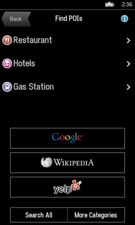 Aplicación CoPilot GPS para Windows Phone con la que puedes encontrar fácilmente cualquier lugar en el mapa. Mapas detallados de calles de todo un país o región, que se almacenan en tu teléfono, para que puedas planificar rutas y aprender a conducir o caminar sin acceso a Internet móvil. Millones de lugares útiles están integrados, por lo que puedes encontrar fácilmente hoteles, restaurantes y más.