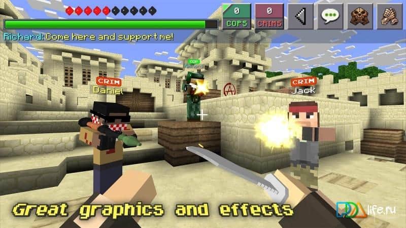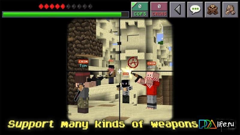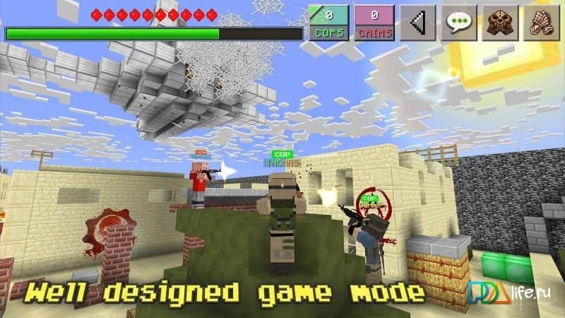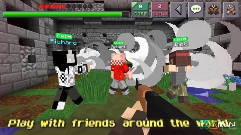 Cops N Crims: Juego de Mini FPS Multijugador – un juego de disparos en primera persona interesante y emocionante en un mundo de píxeles. ¡Juega como policías o criminales con 24 otros jugadores de todo el mundo! A tu disposición tendrás muchas armas con diferentes propiedades, como precisión, potencia de las balas, velocidad de movimiento del jugador y otros. También puedes cambiar la apariencia del jugador e incluso descargar otras skins desde tu dispositivo!