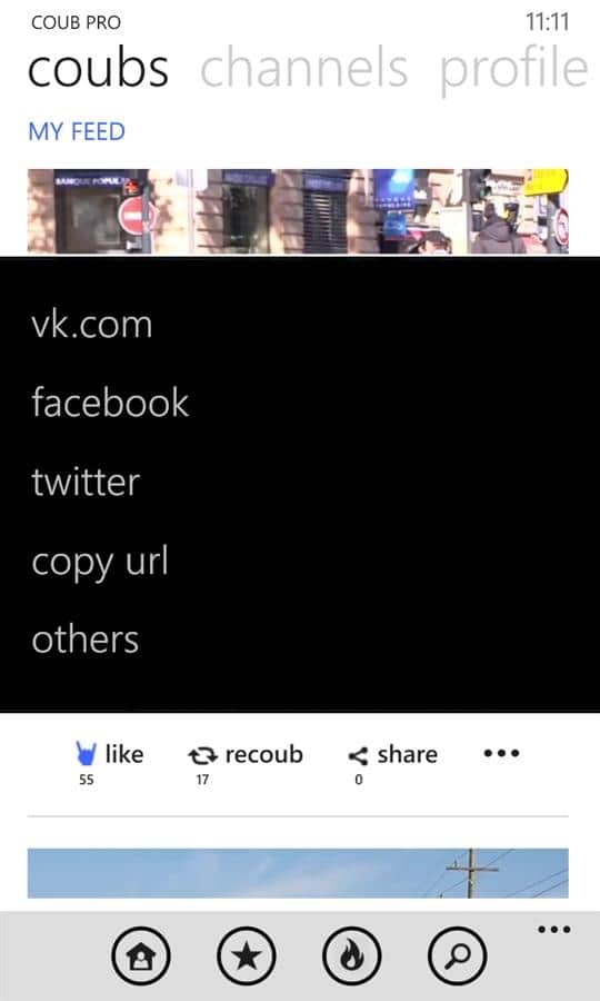 Posibilidad de compartir coubs con amigos en redes sociales;