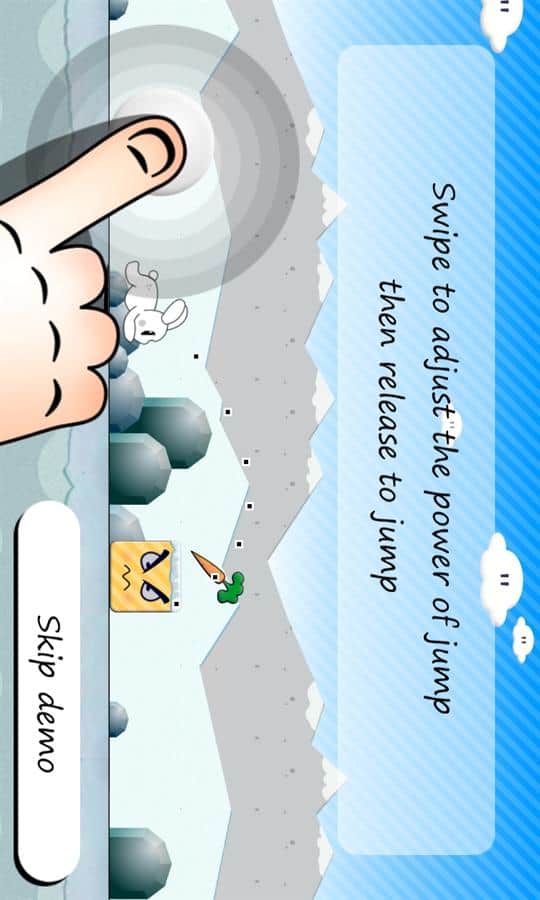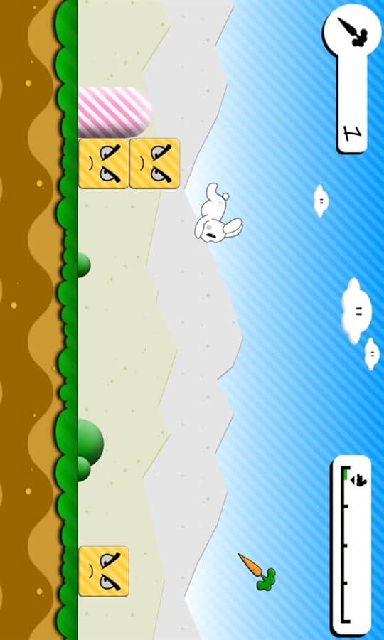 Covy Rush Premium - un emocionante juego con una jugabilidad sencilla donde deberás saltar sobre bloques. Controla al conejo corredor y salta sobre los bloques, mientras recoges tantas zanahorias como puedas. Apunta con la mira la trayectoria del salto y salta, asegurándote de no tocar los bloques, que pueden estar ubicados no solo en el suelo, sino también en el aire. Viaja a través de diferentes mundos y recoge la mayor cantidad de zanahorias para ser el primero en la tabla de líderes.