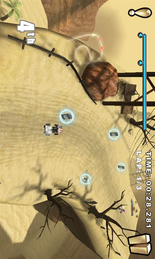 Cracking Sands en Windows Phone. En el juego verás las impresionantes carreras de coches de juguete, completamente equipados con diferentes armas. Destruyendo a los oponentes, intenta llegar primero a la línea de meta. El juego tiene excelentes gráficos, buen sonido y una jugabilidad adictiva.
