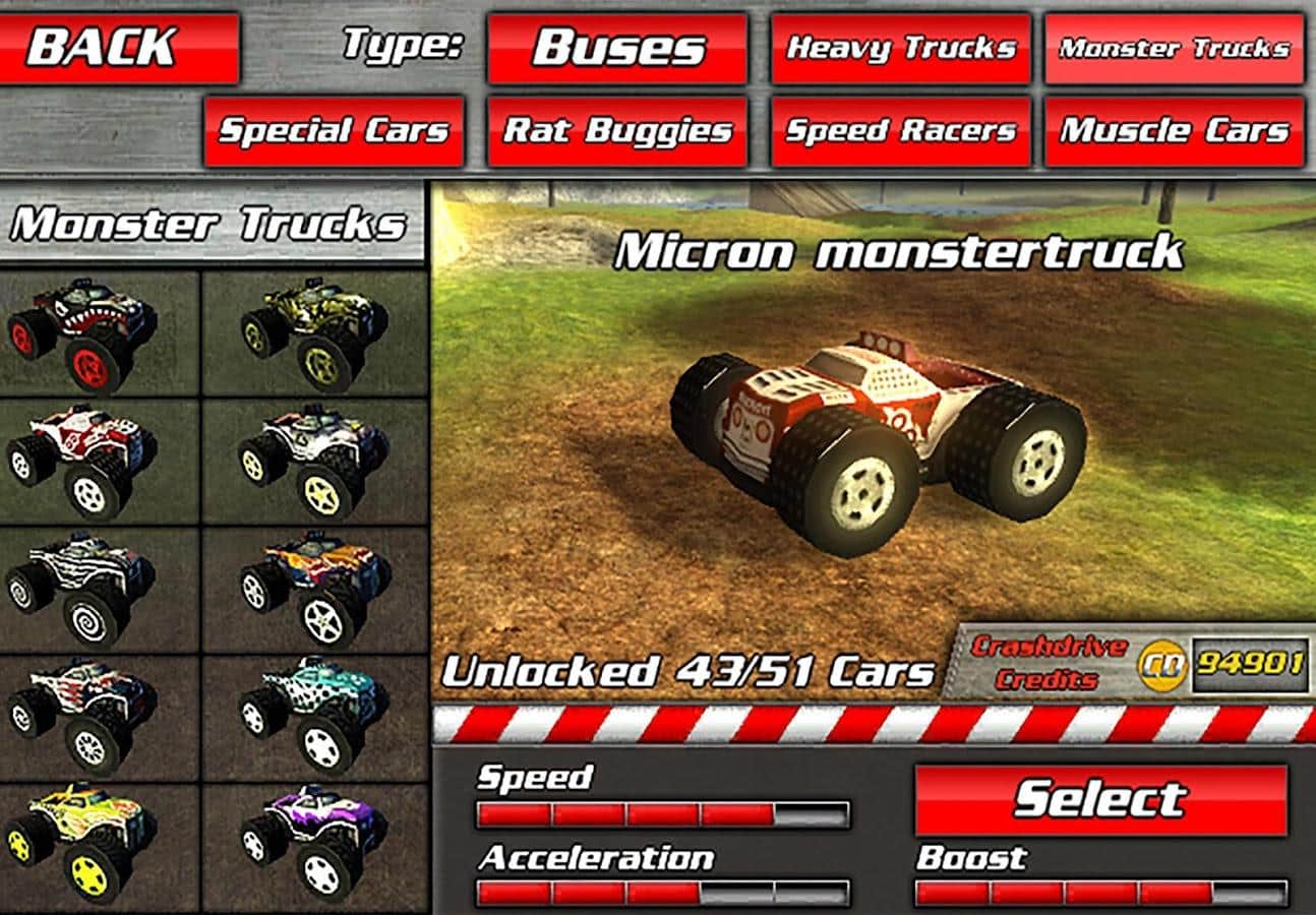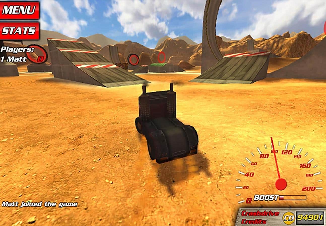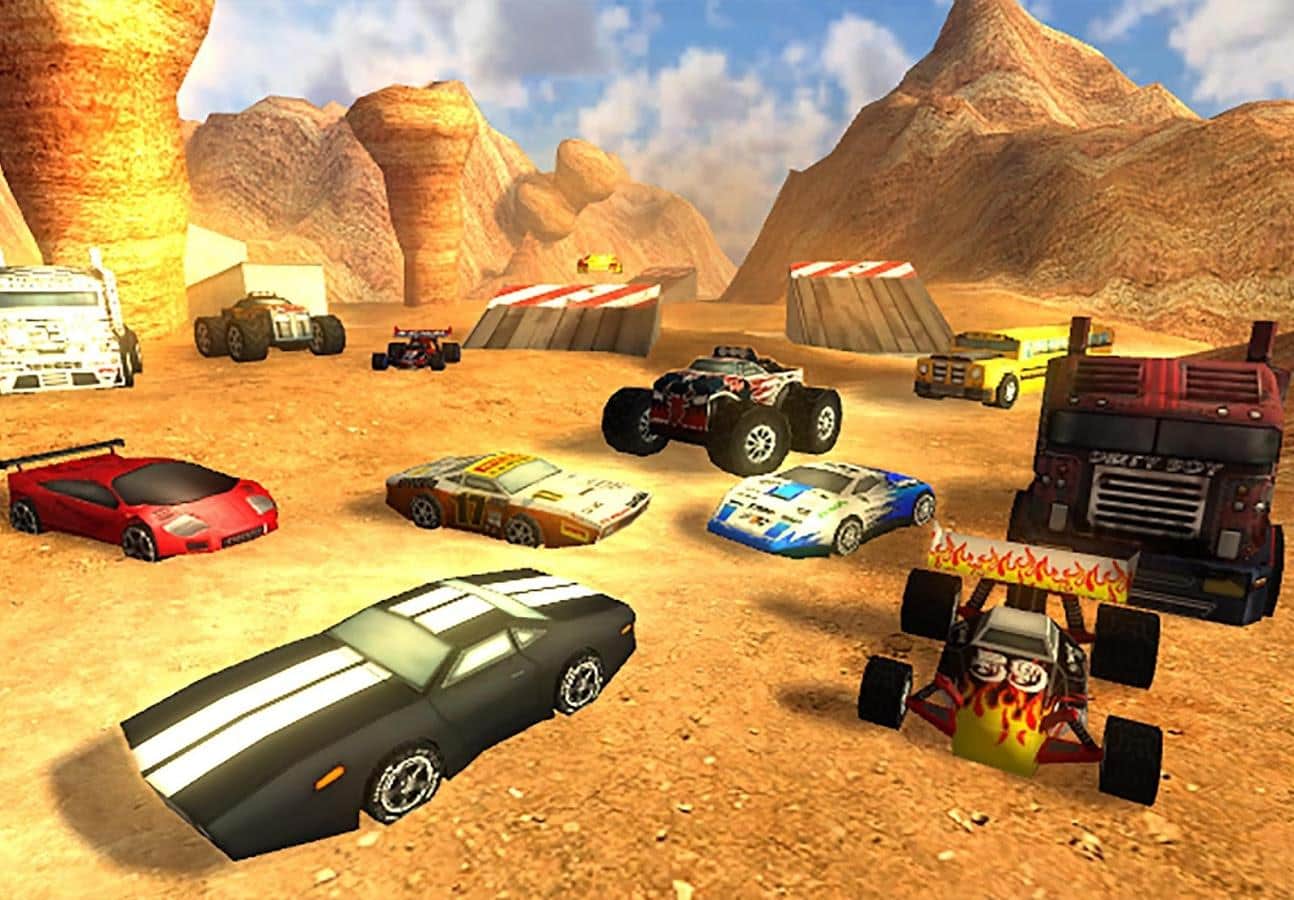 así que, tendrás que realizar varias tareas, por las cuales obtienes dinero y puedes comprar nuevos autos: autobuses, camiones con ruedas enormes, autos musculosos (solo alrededor de dos docenas de diferentes autos). Recoge monedas, pasa una especie de ruta de puntos de control, realiza saltos vertiginosos en trampolines, supera ascensos peligrosos y descensos pronunciados, en general, disfruta de tu libertad.