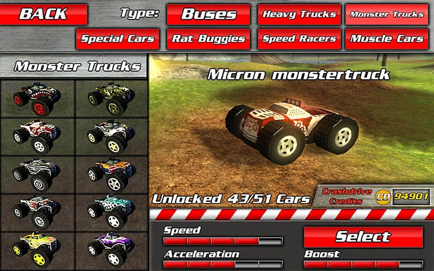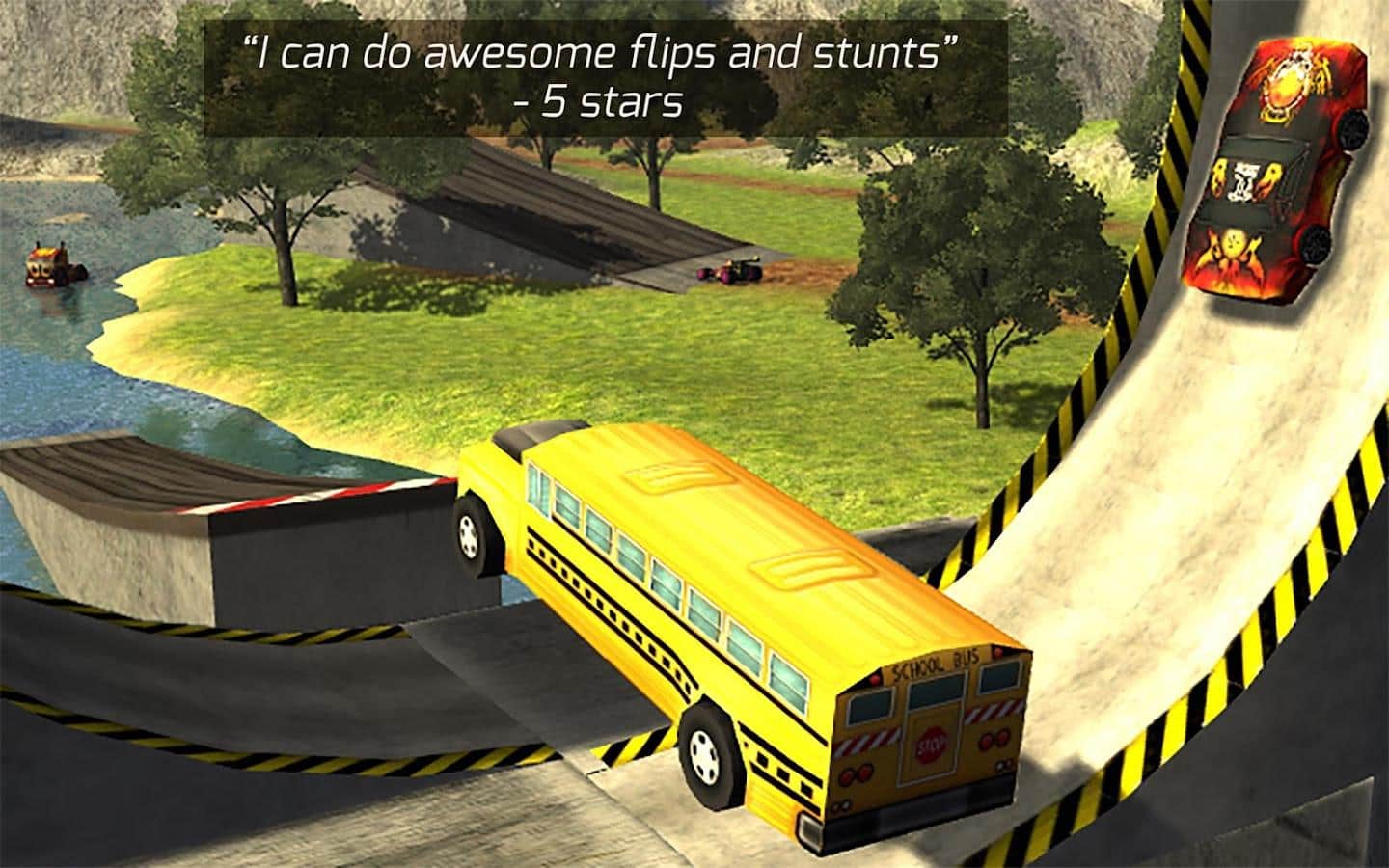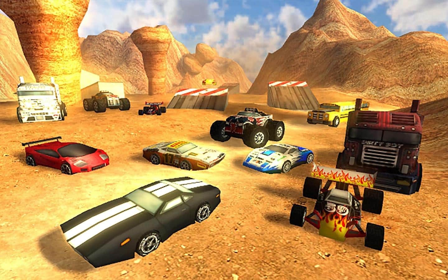 así que, tendrás que realizar varias tareas, por las cuales obtienes dinero y puedes comprar nuevos autos: autobuses, camiones con ruedas enormes, autos musculosos (solo alrededor de dos docenas de diferentes autos). Recoge monedas, pasa una especie de ruta de puntos de control, realiza saltos vertiginosos en trampolines, supera ascensos peligrosos y descensos pronunciados, en general, disfruta de tu libertad.