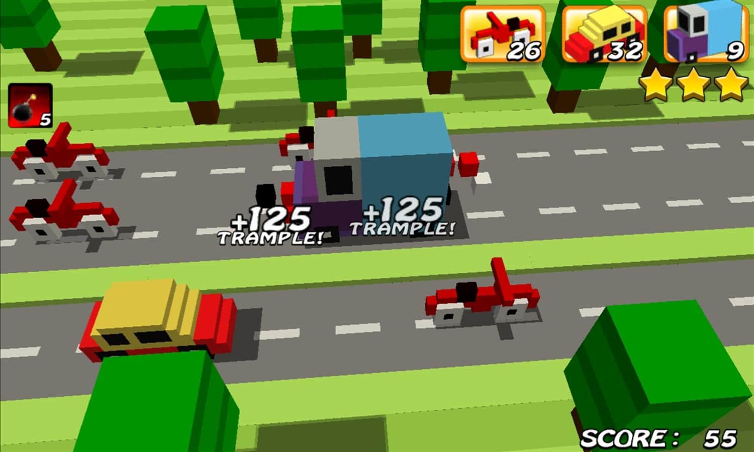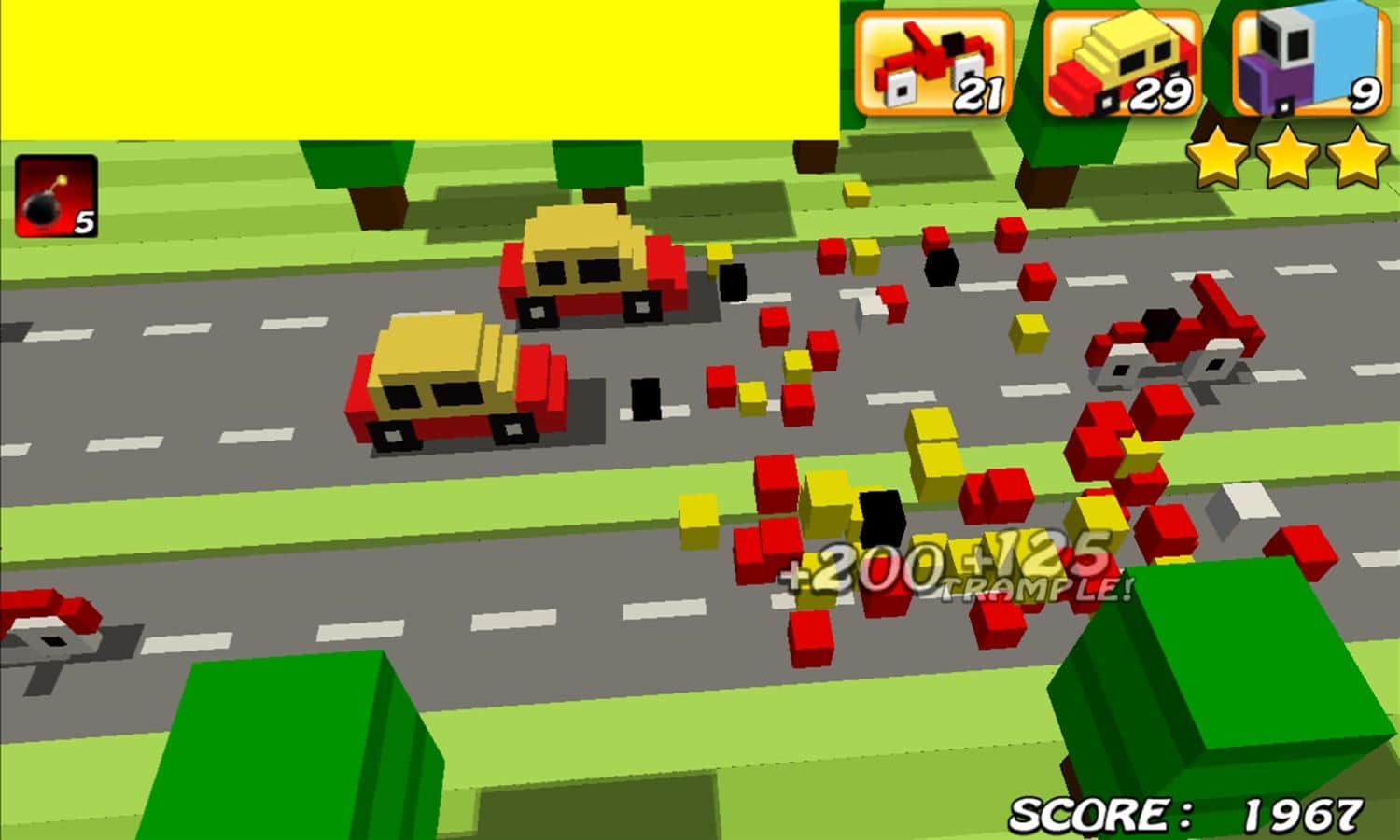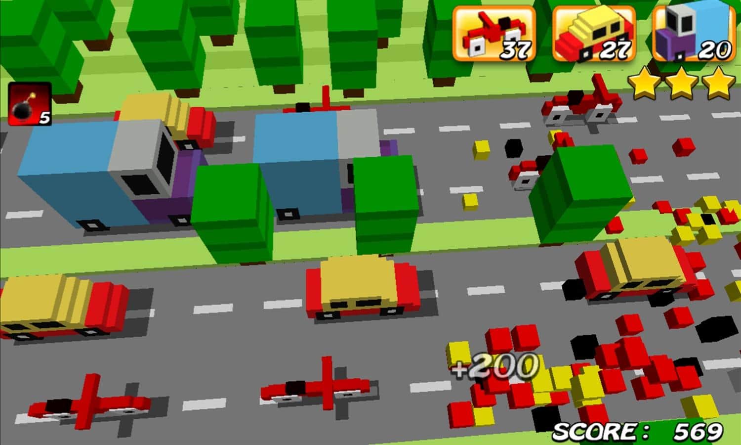 Crashy Road – un juego emocionante, hecho al estilo de Crossy Road donde deberás despejar tu camino del tráfico interminable. Controla tus coches y aplasta todos los vehículos que se crucen en tu camino convirtiéndolos en cubos. Con cada nuevo nivel, la cantidad de tráfico aumentará, así como el número de carriles para conducir, complicando tu tarea varias veces. En situaciones difíciles, recurre a los bonos-bombas, que limpiarán instantáneamente todas las carreteras de coches, pero úsalos con sabiduría ya que la cantidad de bombas es limitada en tu arsenal de destrucción. Te esperan más de 100 niveles emocionantes, tres tipos de transporte y un fácil control con un solo toque.