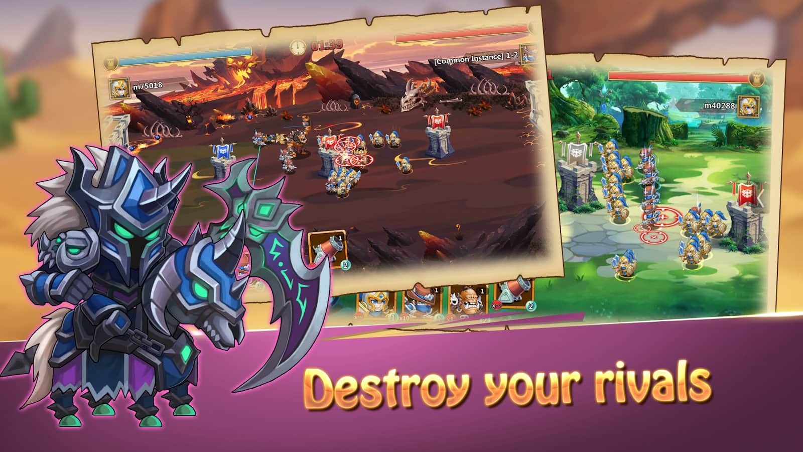 Castillo Loco – estrategia para Android, donde controlas un pequeño Reino y lo proteges de los enemigos. Construye torres defensivas y forma un tremendo ejército de arqueros, caballeros y criaturas míticas. Tu castillo está ubicado frente al castillo del enemigo, así que lanza todas tus fuerzas y soldados a la batalla y no dejes que lo destruyan. Compite con amigos y otros jugadores de todo el mundo por los mejores resultados y mejora tu ejército y tu castillo. Las principales características del juego son gráficos coloridos, buena música y una variedad de unidades de combate.