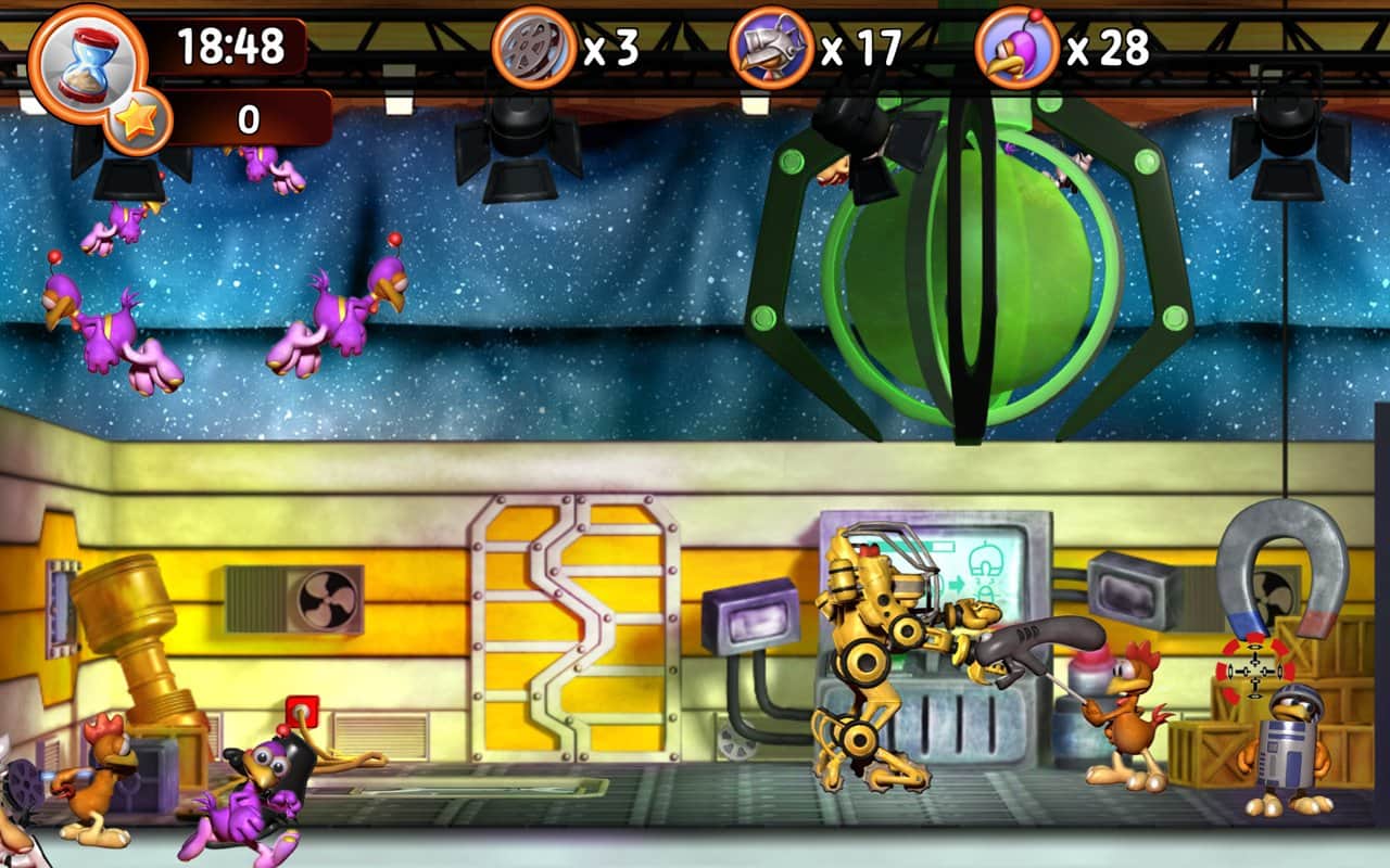 Crazy Chicken Director's Cut – toma un arma y dispara a las gallinas aseguradas, llenando todo el estudio. En este juego, jugarás el papel de Director de los populares estudios de cine en los pabellones donde vuelan las gallinas. Muestra tu destreza y precisión y derriba todas las gallinas que te impiden trabajar. No dejes que una de las gallinas escape de tu represalia e interrumpa el rodaje de la película. Muévete a través de diferentes ubicaciones del juego, donde te esperarán las gallinas. Conviértete en el mejor cazador de polluelos en el juego y recibe todos los logros en el juego, que son más de 35. Los jugadores del juego apreciarán un control simple e intuitivo, así como ubicaciones coloridas y una variedad de gallinas.