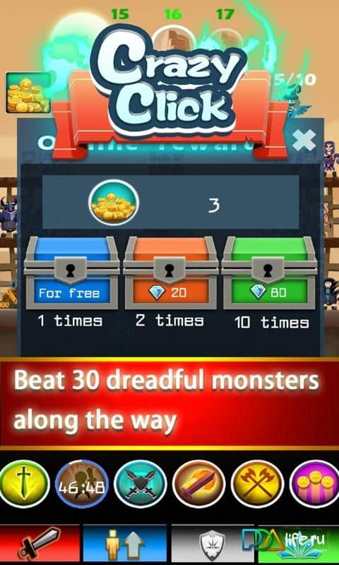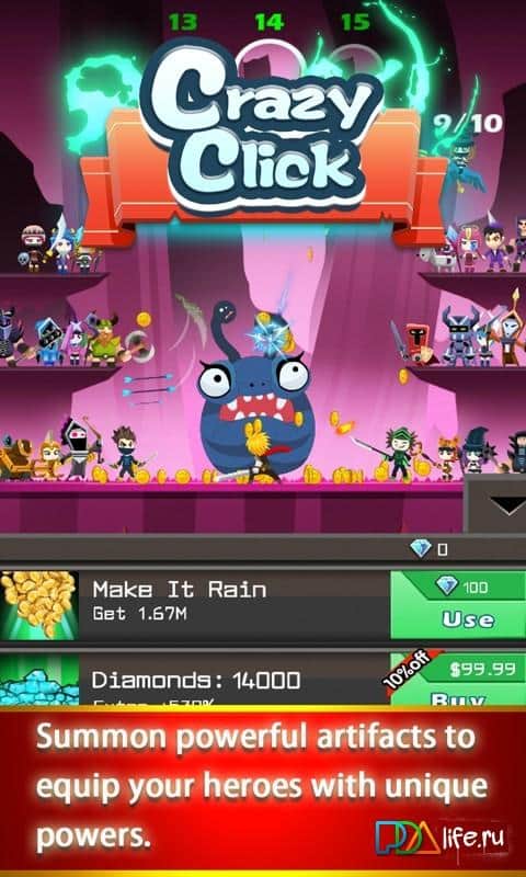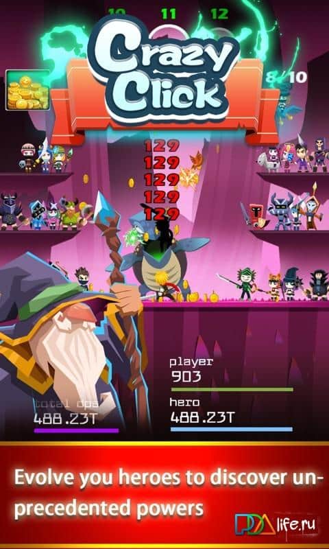 El desarrollo de dispositivos móviles y el aumento de la potencia de los smartphones y tabletas ha permitido a los desarrolladores crear proyectos de juegos móviles que no tienen nada que envidiar a los juegos de primer nivel en plataformas de escritorio. Sin embargo, hasta ahora la tarea principal de los juegos móviles sigue siendo la posibilidad de pasar el tiempo libre. Por eso, géneros como los rompecabezas de tres en raya, plataformas arcade, arcades hardcore y, por supuesto, clickers siguen siendo tan populares y demandados. Crazy Click es realmente un clicker de calidad con excelentes gráficos, un proceso de juego clásico y una gran cantidad de agradables adiciones. Los creadores de este juego tomaron como base la mecánica de juego popular; todo lo que se requiere de usted es tocar rápidamente la pantalla y recoger monedas, y luego, con los bonos ganados, mejorar al personaje y así hasta el infinito. Pero vale la pena destacar las amplias posibilidades de mejora, lo que le da al juego una mayor fascinación.