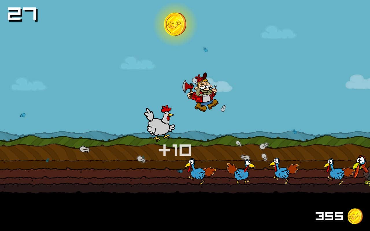 Crazy Farming – una divertida arcade, en la que ayudarás al amable granjero Bill Bob a cortar pavos. Su granja está llena de pavos que están listos para ir a los estantes de las tiendas. Y ahora nuestro héroe toma un hacha y se va a cortar a los pobres pajaritos. Saltando sobre los pavos, te desplazas cada vez más por la granja, y si fallas, terminarás hasta el cuello en estiércol. Salta sobre los pavos y no hagas que tu malvada madre se queje de ti. Es un juego divertido con personajes cómicos, donde tendrás la oportunidad de divertirte y disfrutar de un excelente humor. Viste a tu héroe con diferentes sombreros y hazlo aún más ridículo y gracioso.