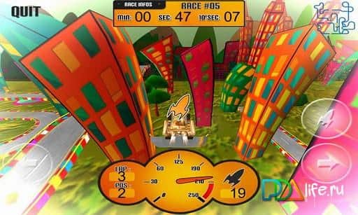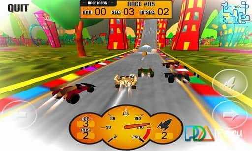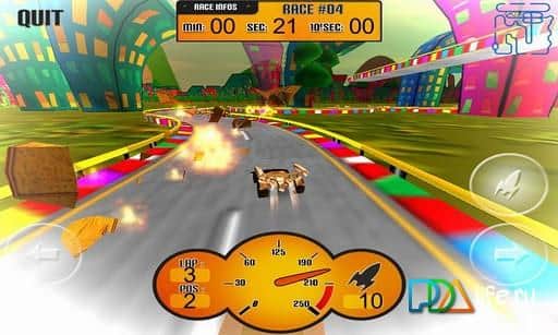 Llega a la meta entre los tres primeros, pero ten cuidado, tus oponentes te obstaculizarán, ¡pero no olvides usar misiles!