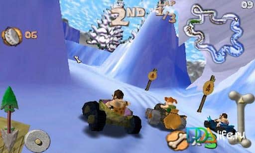 Cro-Mag Rally - sumérgete en un mundo prehistórico lleno de salvajismo, enormes plantas, huesos de grandes animales y hábitos salvajes. Los coches de esa época son sorprendentes en su ingenio. Las ruedas están hechas de troncos y piedras, y la propia máquina está hecha de huesos y colmillos. Pero esto no impide la variedad y las características técnicas de tu supercoche. Bueno, el propósito de Cro-Mag Rally para Android es claro - ¡GANAR! Lo único que queda es ¡comenzar la carrera!
